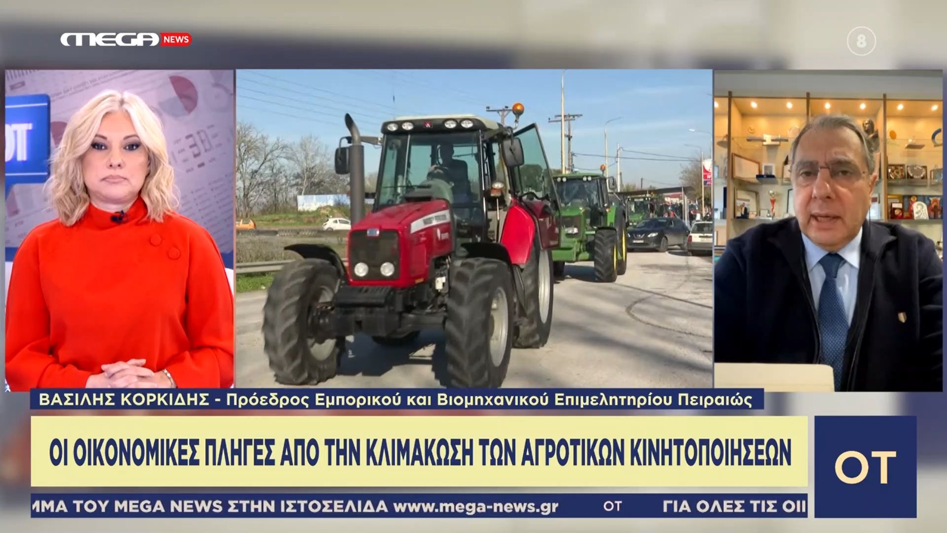 Ο Πρόεδρος του Εμπορικού και Οικονομικού Επιμελητηρίου Πειραιώς, Βασίλης Κορκίδης, αναλύει τις σοβαρές οικονομικές συνέπειες που προκύπτουν από την κλιμάκωση των αγροτικών κινητοποιήσεων στη χώρα. Ειδικότερα, επισημαίνει τις επιπτώσεις στις προμήθειες και τις τιμές προϊόντων, οι οποίες επηρεάζουν την καθημερινότητα των πολιτών.