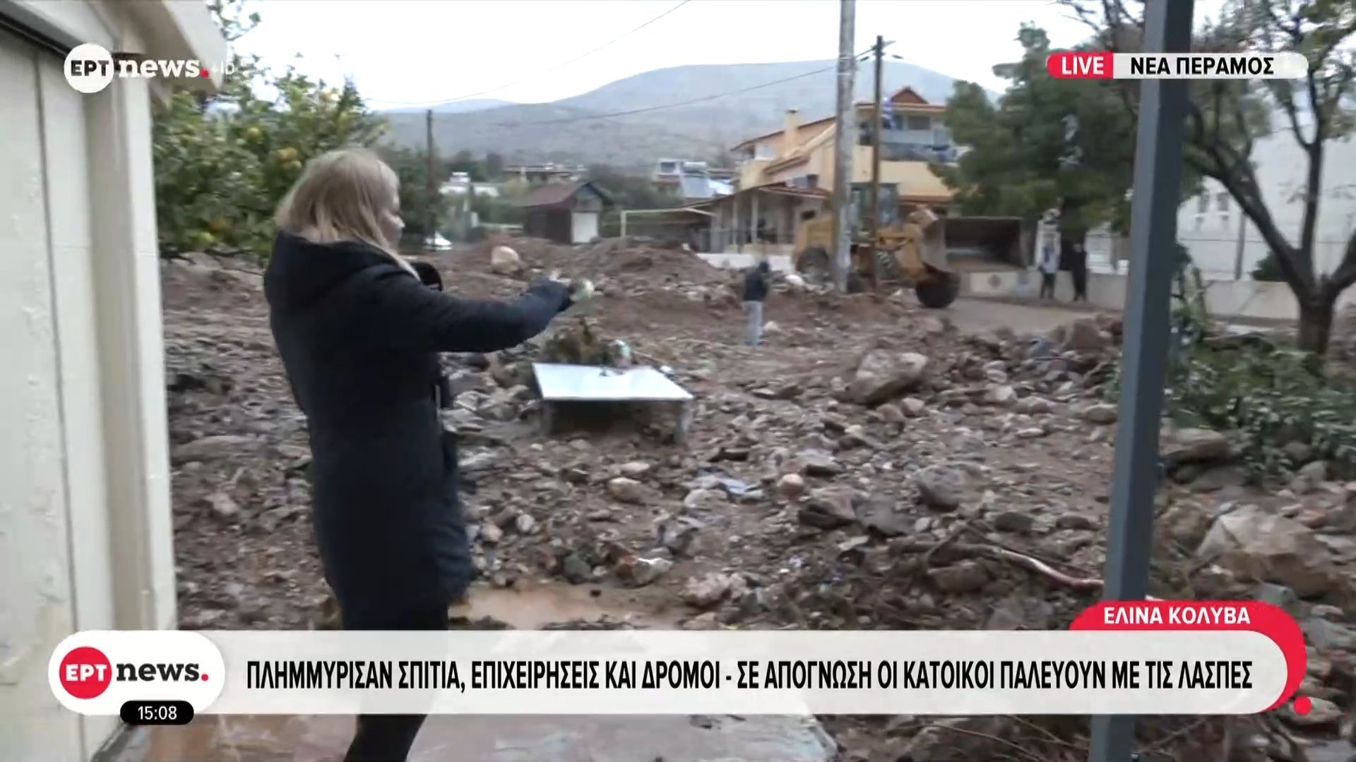 Μετά από έντονες βροχοπτώσεις, οι δρόμοι στη Νέα Πέραμο έχουν πλημμυρίσει, με το νερό να φτάνει έως και το ένα μέτρο σε ορισμένες περιοχές. Οι κάτοικοι αντιμετωπίζουν σοβαρές δυσκολίες στην καθημερινότητά τους, καθώς η κυκλοφορία έχει διακοπεί και πολλές επιχειρήσεις έχουν πληγεί.