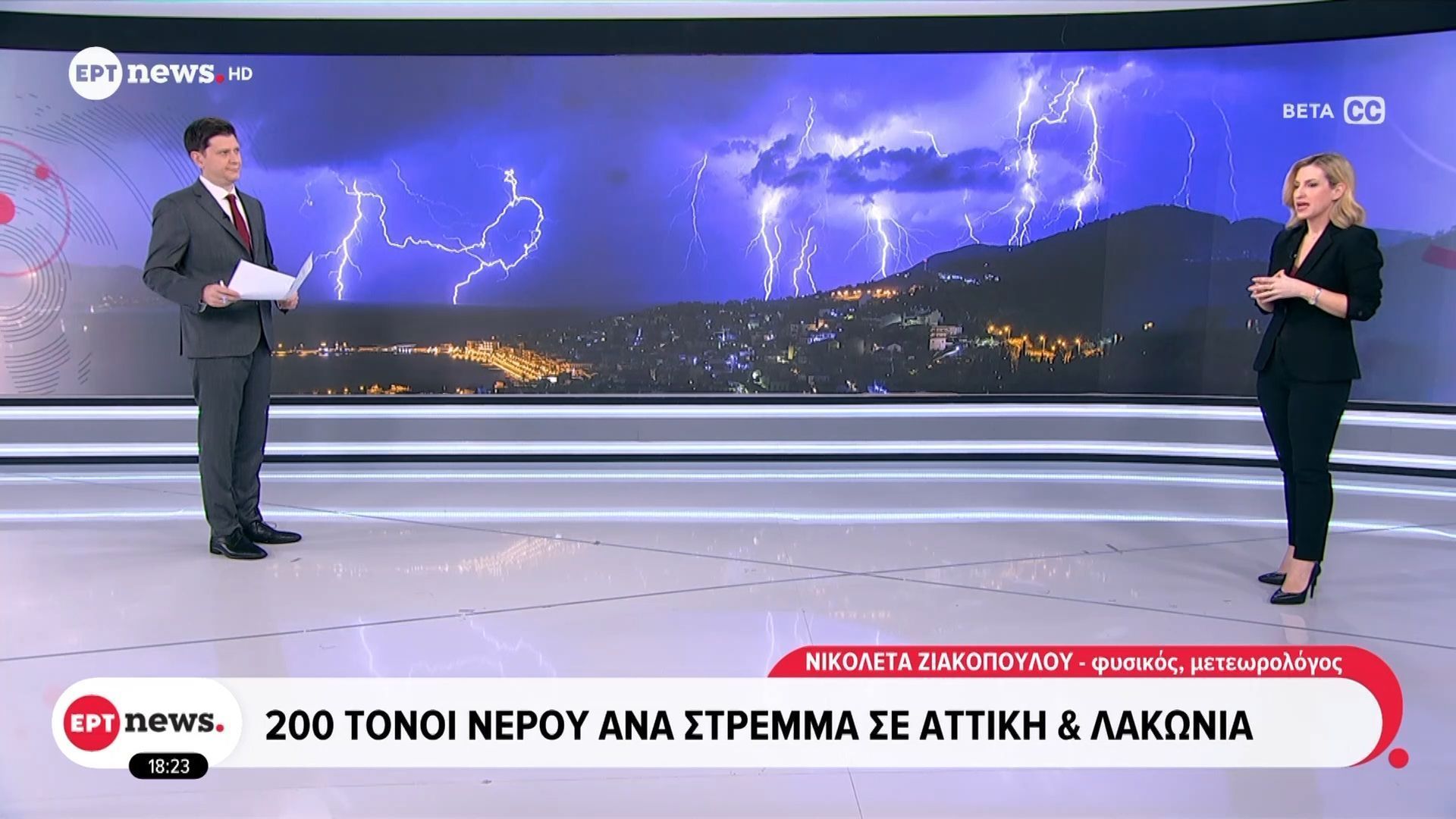 Περισσότεροι από 100.000 κεραυνοί έπληξαν την Αττική και τη Λακωνία σε διάστημα μόλις 18 ωρών, προκαλώντας σοβαρές καιρικές συνθήκες στην περιοχή. Οι έντονες βροχοπτώσεις παρατηρήθηκαν, με αποτέλεσμα να συγκεντρωθούν 260 τόνοι νερού ανά στρέμμα, επηρεάζοντας την καθημερινότητα των κατοίκων.