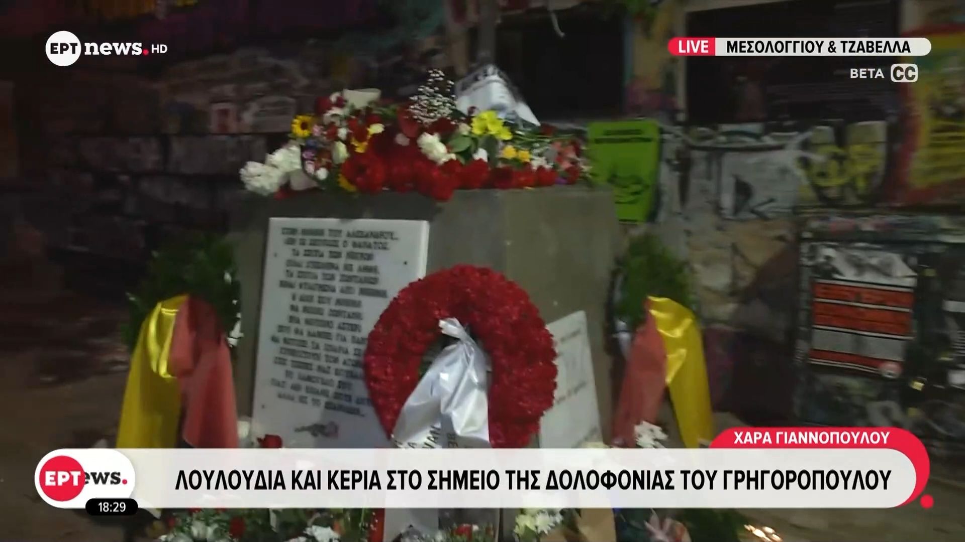Λουλούδια και κεριά στο σημείο της δολοφονίας του Γρηγορόπουλου