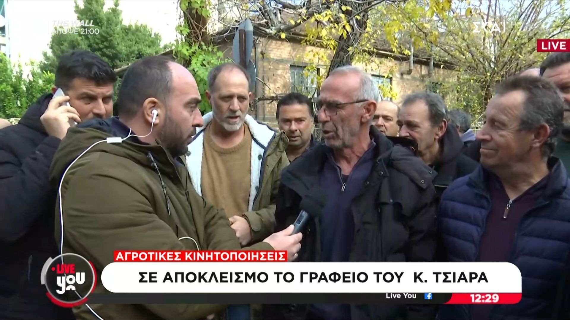 Πλήθος αγροτών συγκεντρώθηκε έξω από το πολιτικό γραφείο του υπουργού Αγροτικής Ανάπτυξης Κώστα Τσιάρα στην Καρδίτσα, διαμαρτυρόμενοι για τον αποκλεισμό του γραφείου του. Ο Άρης Πορτοσάλτε, κατά τη διάρκεια της εκπομπής του, διάβασε το μήνυμα του υπουργού, το οποίο αναφερόταν στην κατάσταση και τις προκλήσεις που αντιμετωπίζει ο αγροτικός τομέας.