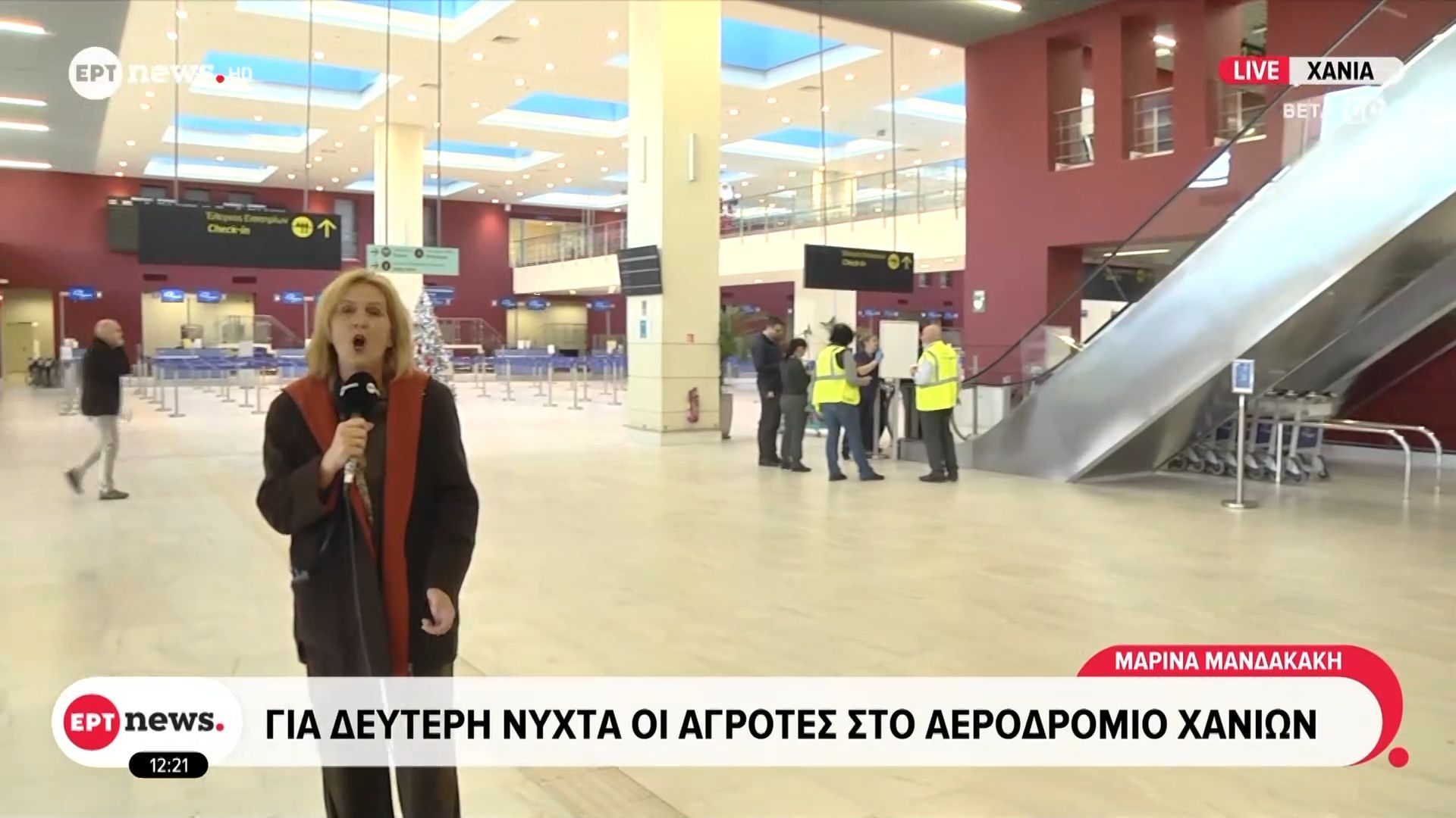 Για δεύτερη συνεχόμενη νύχτα, οι αγρότες συγκεντρώνονται στο αεροδρόμιο Χανίων, διαμαρτυρόμενοι για τις δυσμενείς συνθήκες που αντιμετωπίζουν στην παραγωγή τους. Οι συμμετέχοντες απαιτούν τη στήριξη της πολιτείας και την αναγνώριση των προβλημάτων που πλήττουν τον αγροτικό τομέα.