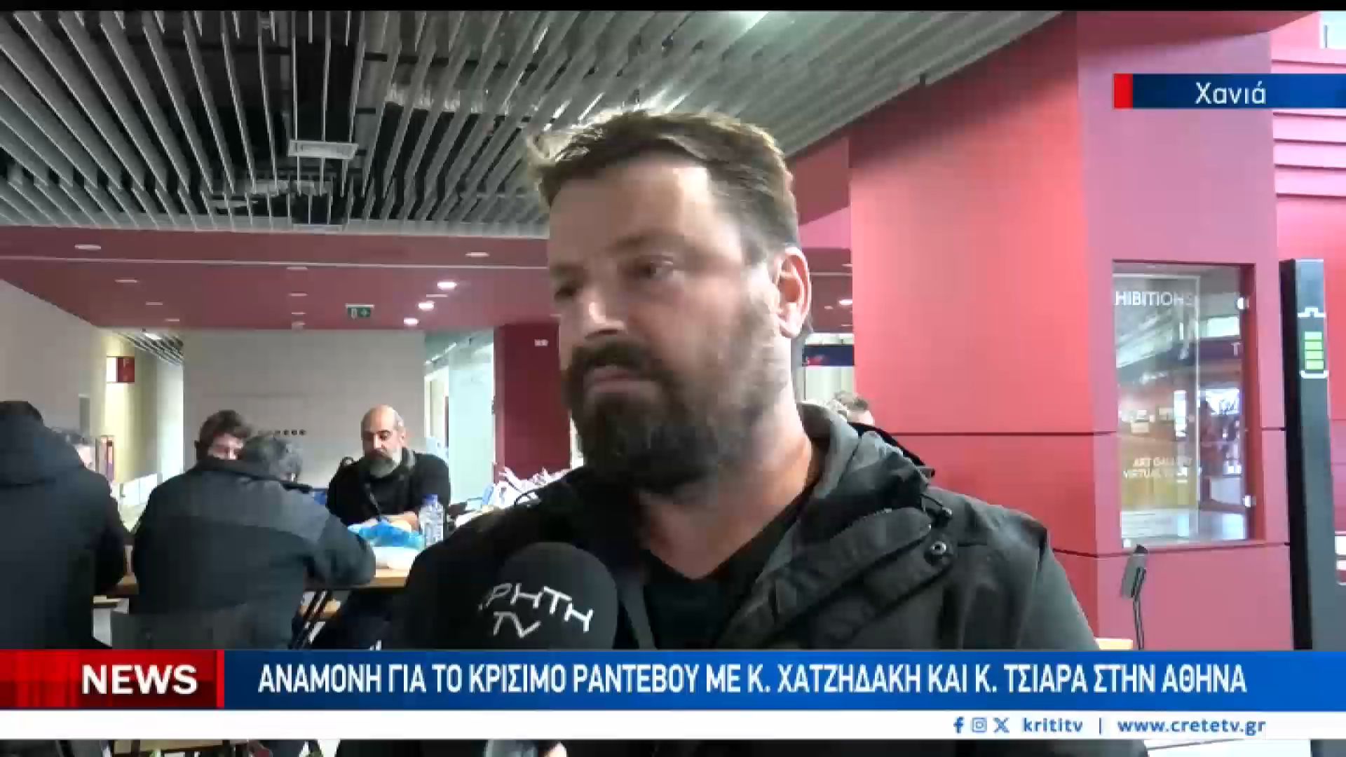 Στον αεροσταθμό του αεροδρομίου Δασκαλογιάννης, οι κτηνοτρόφοι και αγρότες των Χανίων συνεχίζουν την κινητοποίησή τους, περιμένοντας το κρίσιμο ραντεβού στην Αθήνα με κυβερνητικούς εκπροσώπους. Η συνάντηση με τον αντιπρόεδρο Κωστή Χατζηδάκη και τον υπουργό Κώστα Τσιάρα είναι καθοριστική για τη διαμόρφωση των επόμενων βημάτων τους.