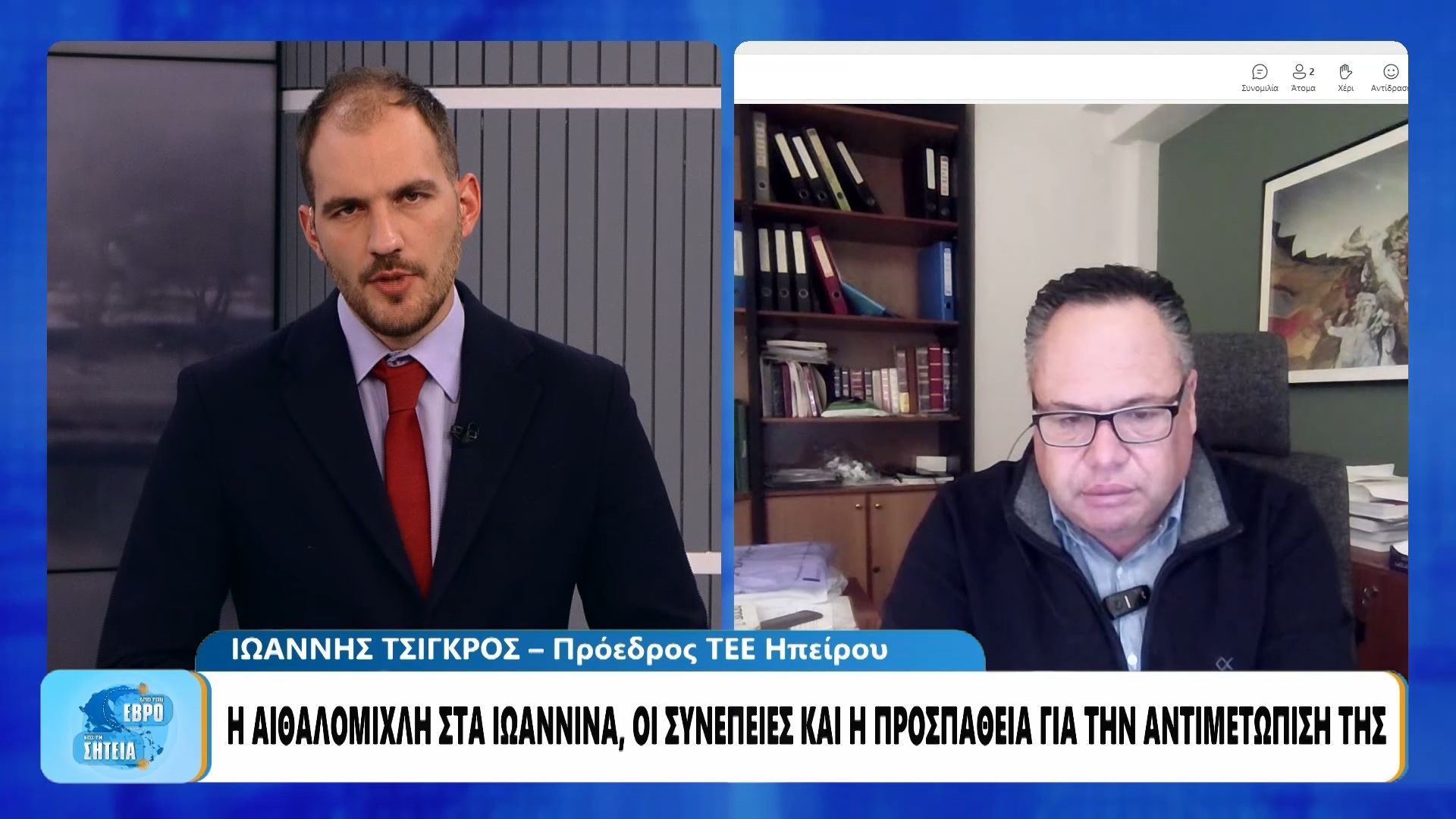 Στην εκπομπή «Από τον Έβρο έως τη Σητεία», ο πρόεδρος του ΤΕΕ Ηπείρου, Ιωάννης Τσίγκρος, κρούει τον κώδωνα του κινδύνου για την αιθαλομίχλη που πλήττει τα Ιωάννινα. Σύμφωνα με τον ευρωπαϊκό οργανισμό περιβάλλοντος, η πόλη κατατάσσεται στις 10 χειρότερες στην Ευρώπη όσον αφορά την ποιότητα του αέρα, γεγονός που θέτει σε κίνδυνο την υγεία των κατοίκων.