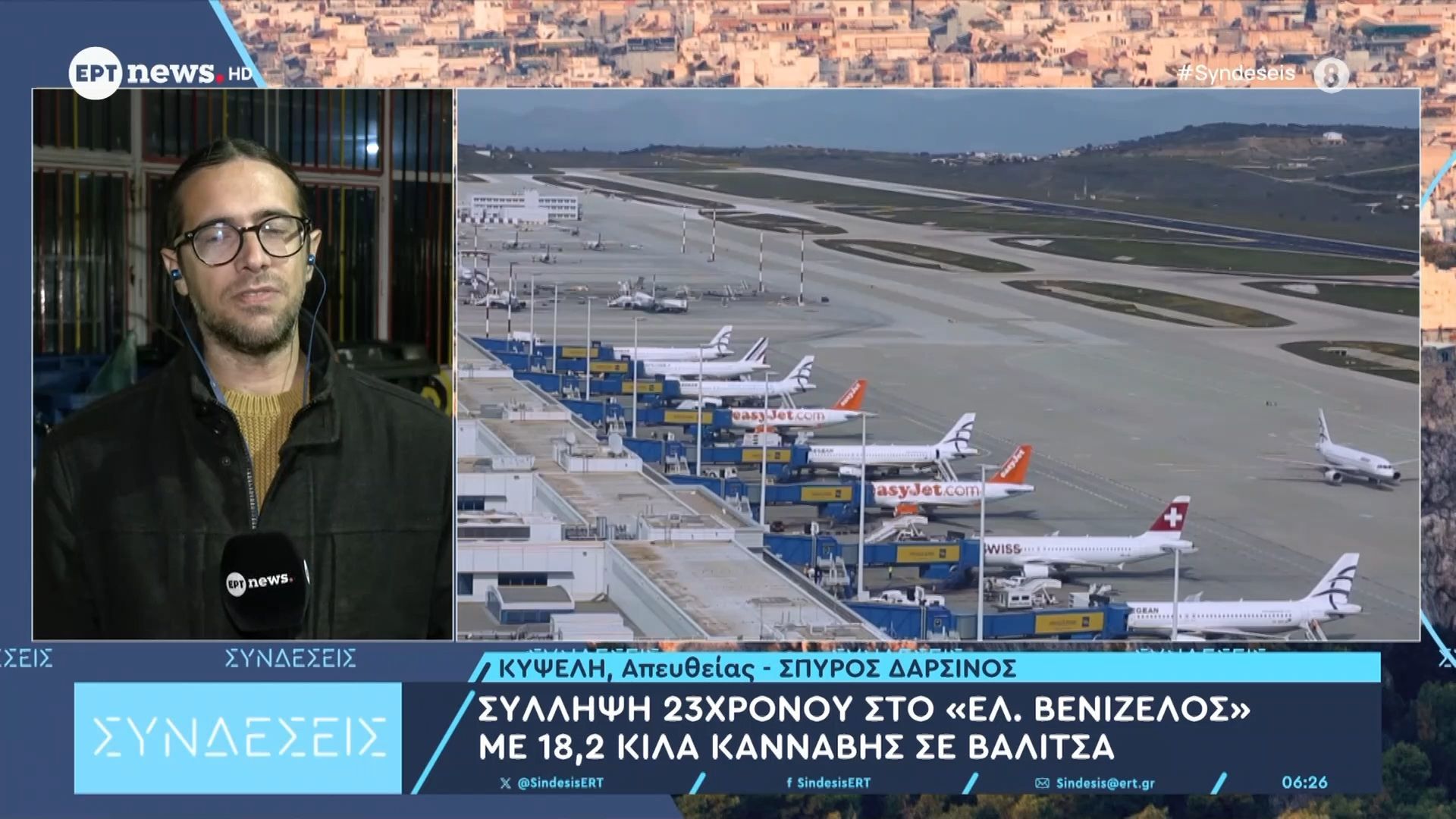 Στη διάρκεια ελέγχου στο αεροδρόμιο «Ελ. Βενιζέλος», οι αρχές προχώρησαν στη σύλληψη ενός 23χρονου άνδρα, ο οποίος μετέφερε 18,2 κιλά κάνναβης σε βαλίτσα. Η επιχείρηση έγινε στο πλαίσιο των προσπαθειών για την καταπολέμηση της διακίνησης ναρκωτικών ουσιών.