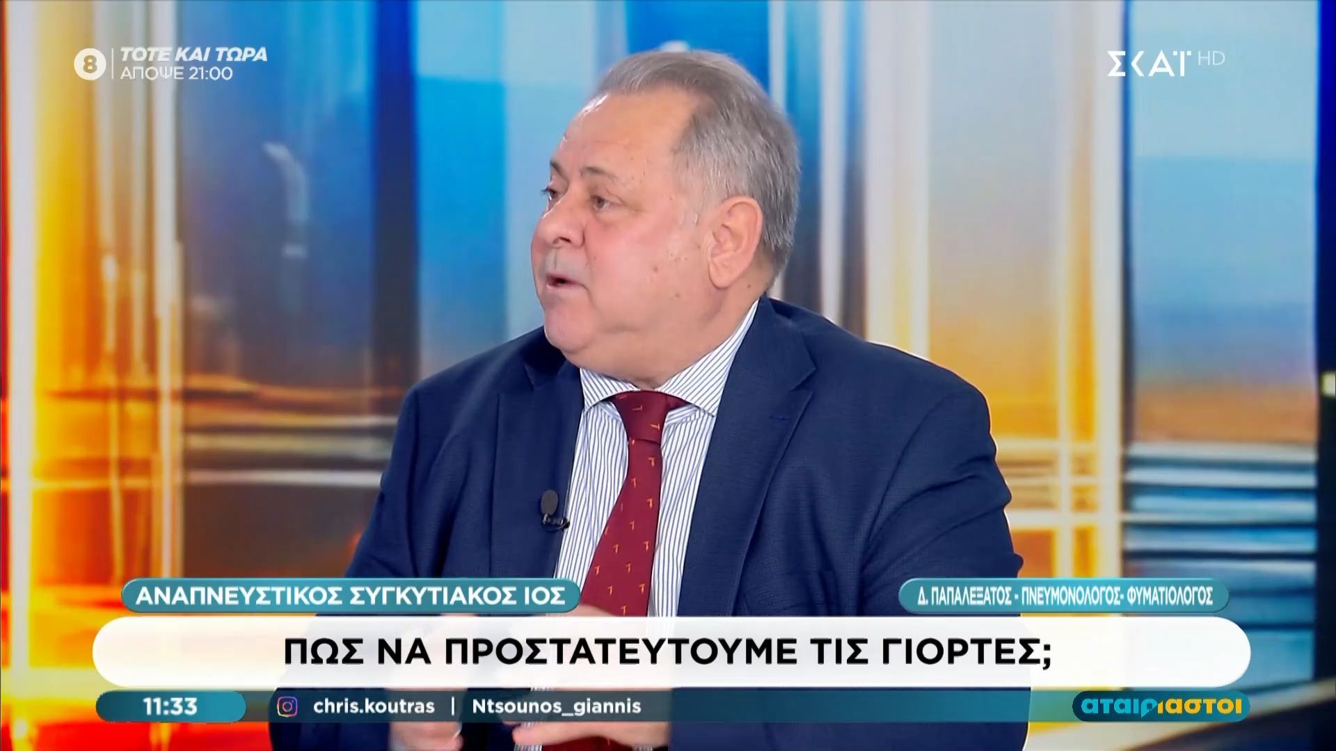 Ο πνευμονολόγος Διονύσης Παπαλεξάτος αναλύει τους κινδύνους που εγκυμονεί ο αναπνευστικός συγκυτιακός ιός, ιδιαίτερα κατά την περίοδο των γιορτών. Διατυπώνει συμβουλές για την προστασία από τη μετάδοση του ιού, εστιάζοντας στη σημασία της υγιεινής και της αποφυγής συνωστισμού.