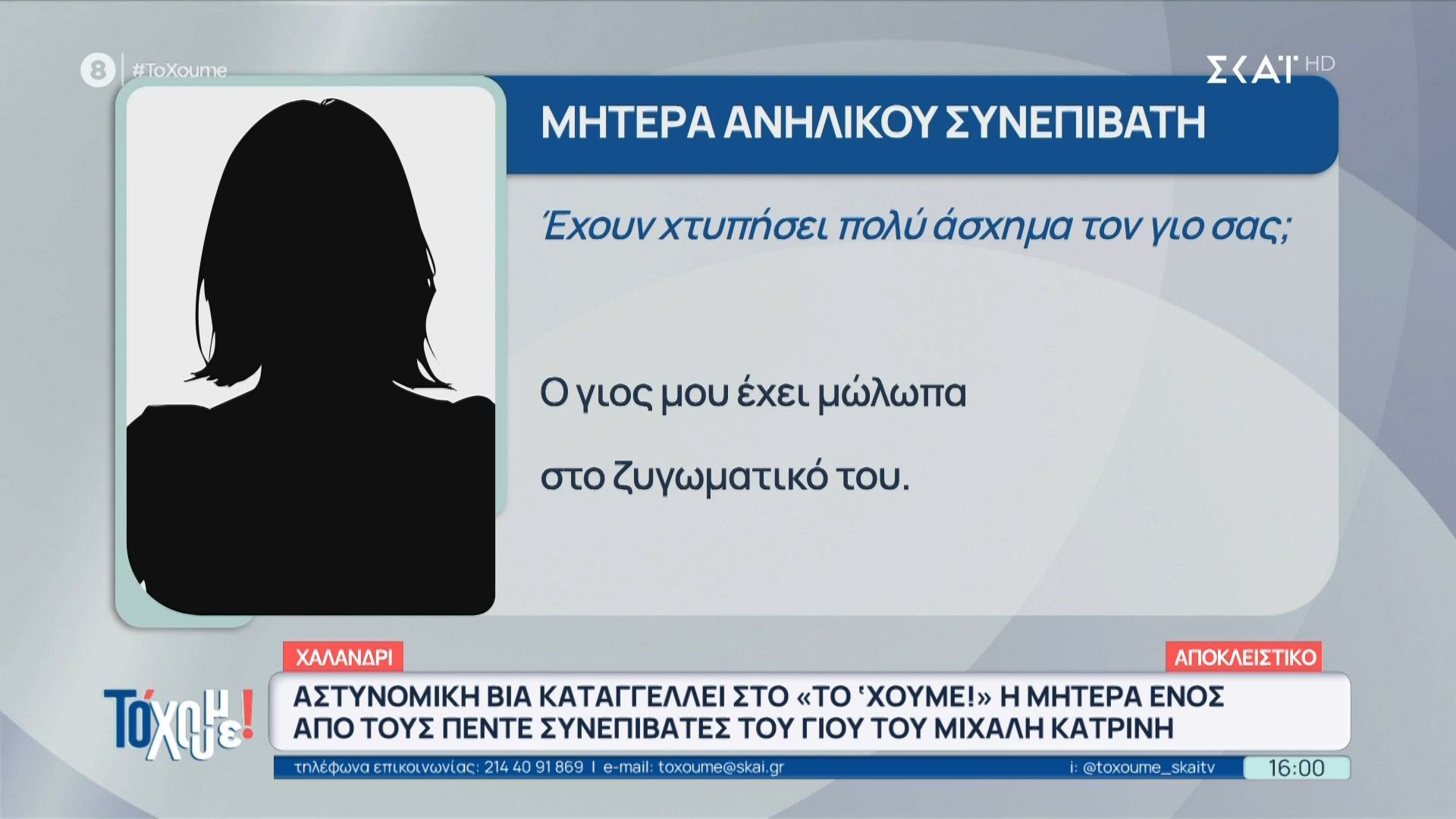 Μητέρα ανήλικου συνεπιβάτη ενός αυτοκινήτου που εμπλέκεται σε καταδίωξη καταγγέλλει περιστατικό αστυνομικής βίας. Σε συνέντευξή της, αναφέρει ότι ο αστυνομικός επιτέθηκε στο παιδί της, δημιουργώντας σοβαρές ανησυχίες για τη συμπεριφορά των αρχών κατά την εκτέλεση των καθηκόντων τους.
