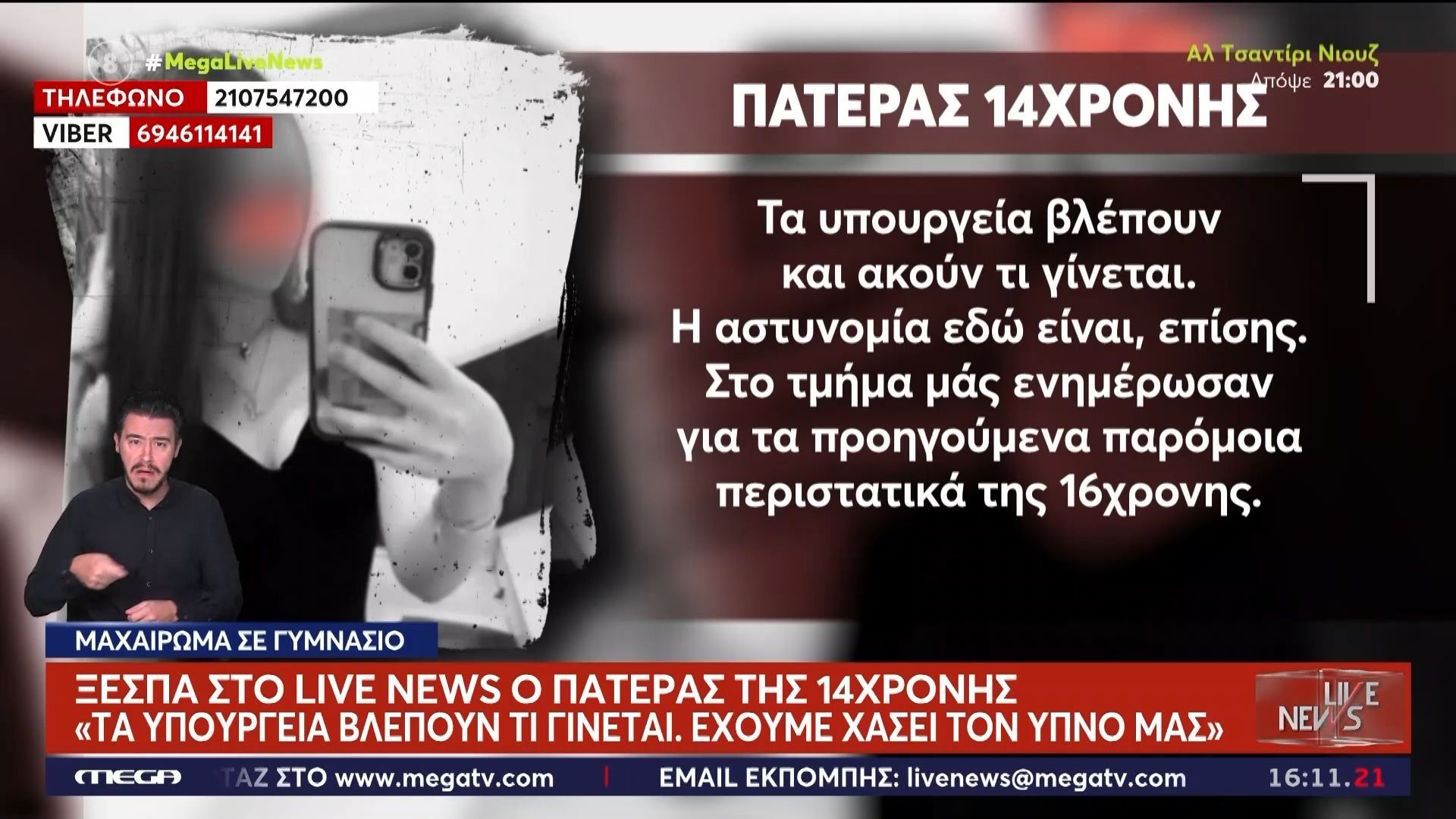 Κυψέλη – Ξεσπά στο Live News ο πατέρας της 14χρονης: Τα υπουργεία βλέπουν τι γίνεται, έχουμε χάσει τον ύπνο μας»