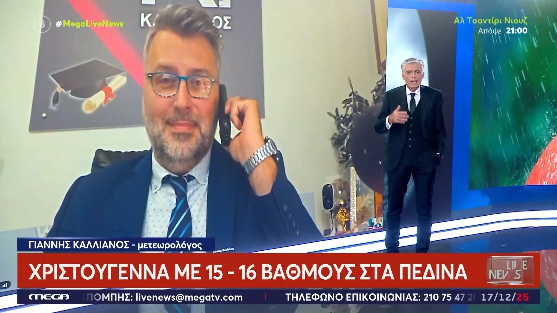 Ο καιρός των Χριστουγέννων φέρνει ήπιες θερμοκρασίες, καθώς οι χιονοπτώσεις αναμένονται περιορισμένες. Ο Γιάννης Καλλιάνος αναλύει τις καιρικές συνθήκες, τονίζοντας ότι οι βροχές θα εμφανιστούν σε διάφορες περιοχές της χώρας, δημιουργώντας μια διαφορετική ατμόσφαιρα για τις γιορτές.