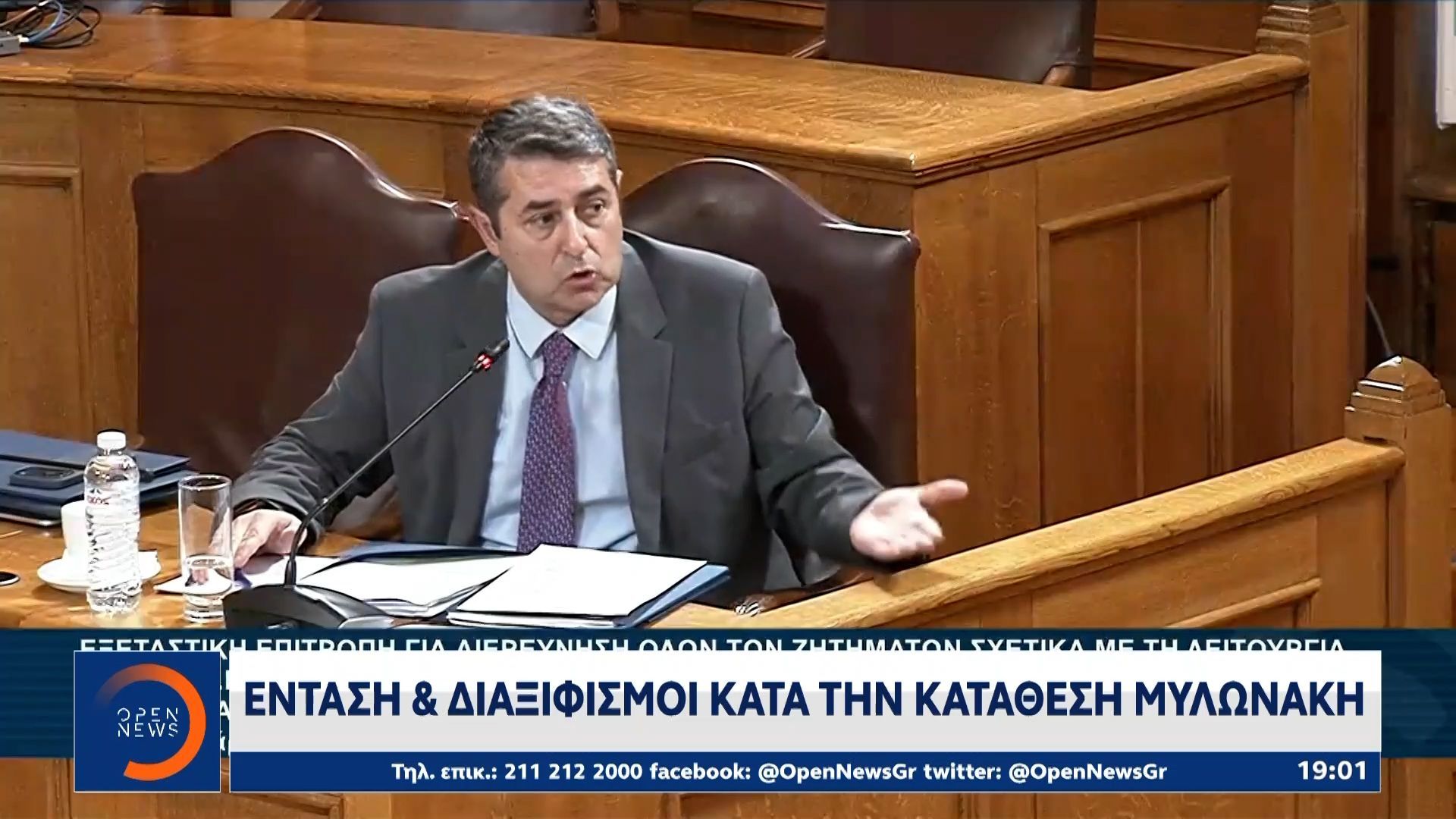 Στην εξεταστική για τον ΟΠΕΚΕΠΕ, η κατάθεση του υφυπουργού παρά τω πρωθυπουργώ Γιώργου Μυλωνάκη προκάλεσε ένταση και διαξιφισμούς. Ο Μυλωνάκης αρνήθηκε οποιαδήποτε γνώση για τις παρακολουθήσεις, τόσο για τον εαυτό του όσο και για τον πρωθυπουργό, με τις αντιπαραθέσεις να εντείνονται.