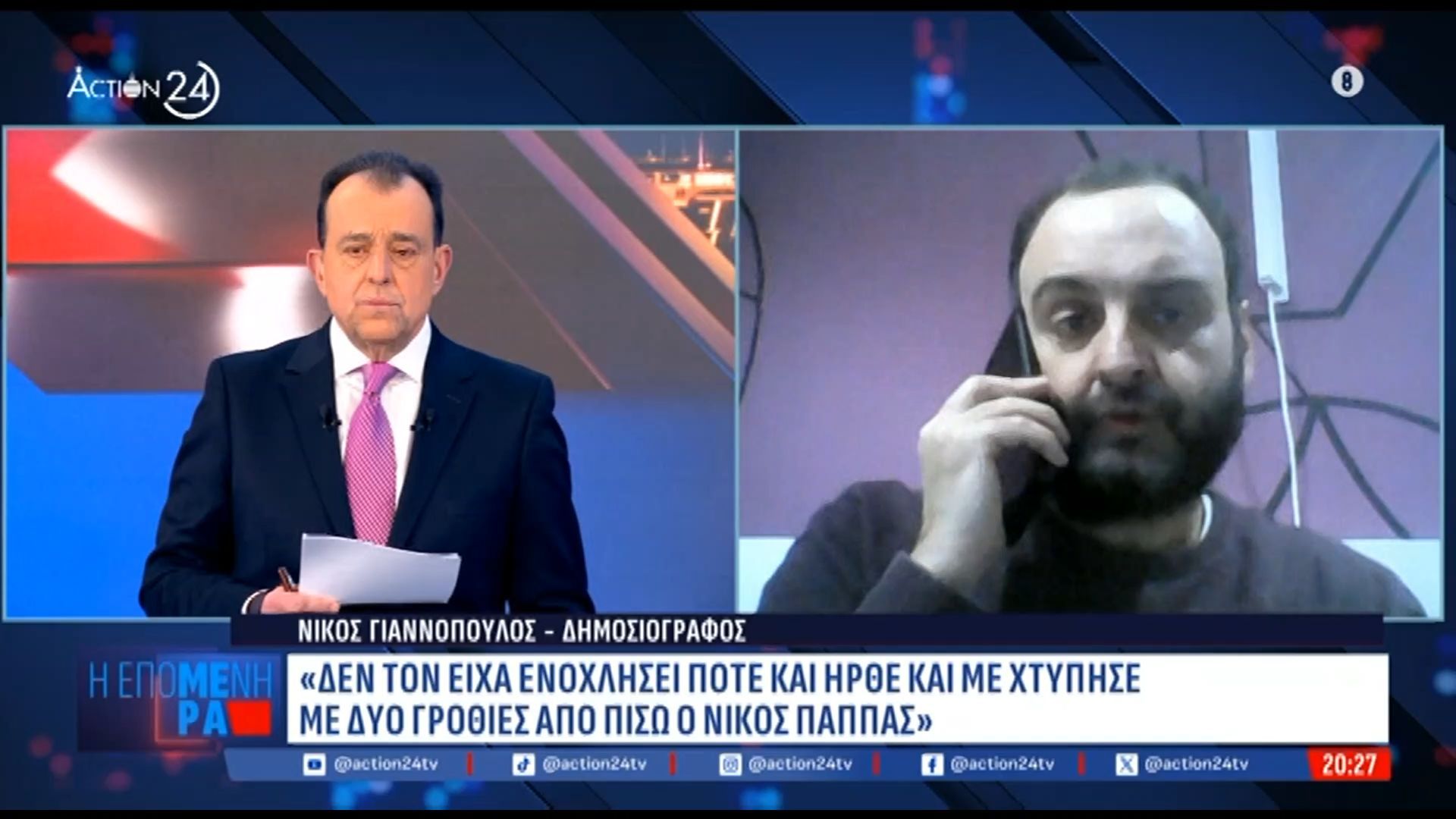 Δημοσιογράφος Ν. Γιαννόπουλος καταγγέλλει τον Ν. Παππά για ξυλοδαρμό, χαρακτηρίζοντας τον επικίνδυνο. Ο Γιαννόπουλος δήλωσε ότι θα προχωρήσει σε νομικές διαδικασίες στην Ελλάδα προκειμένου να αποδοθεί δικαιοσύνη.
