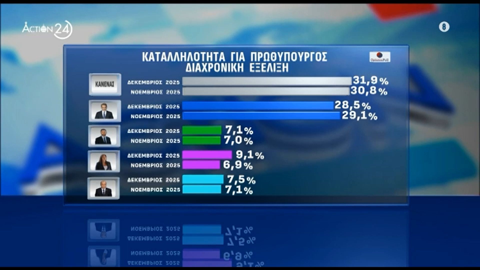 Σύμφωνα με τα αποτελέσματα της τελευταίας δημοσκόπησης, το 31,9% των ερωτηθέντων επιλέγει τον «Κανένα» ως τον καταλληλότερο υποψήφιο για πρωθυπουργός. Οι αναλυτές Νίκος Σβέρκος, Γιάννης Παπαγιάννης και Ζαχαρίας Ζούπης, διευθύνων σύμβουλος της Opinion Poll, προσφέρουν τις εντυπώσεις τους σχετικά με αυτή τη δημοσκοπική τάση.