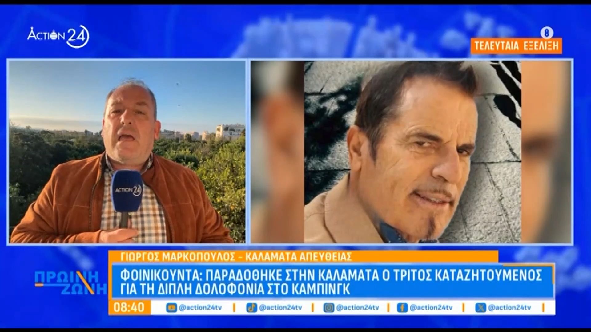 Ο τρίτος κατηγορούμενος για τη διπλή δολοφονία στο κάμπινγκ της Φοινικούντας παραδόθηκε στις Αρχές στην Καλαμάτα. Ο άνδρας, ο οποίος είχε καταζητηθεί για αρκετές ημέρες, αναμένεται να αντιμετωπίσει σοβαρές κατηγορίες σε σχέση με την υπόθεση.