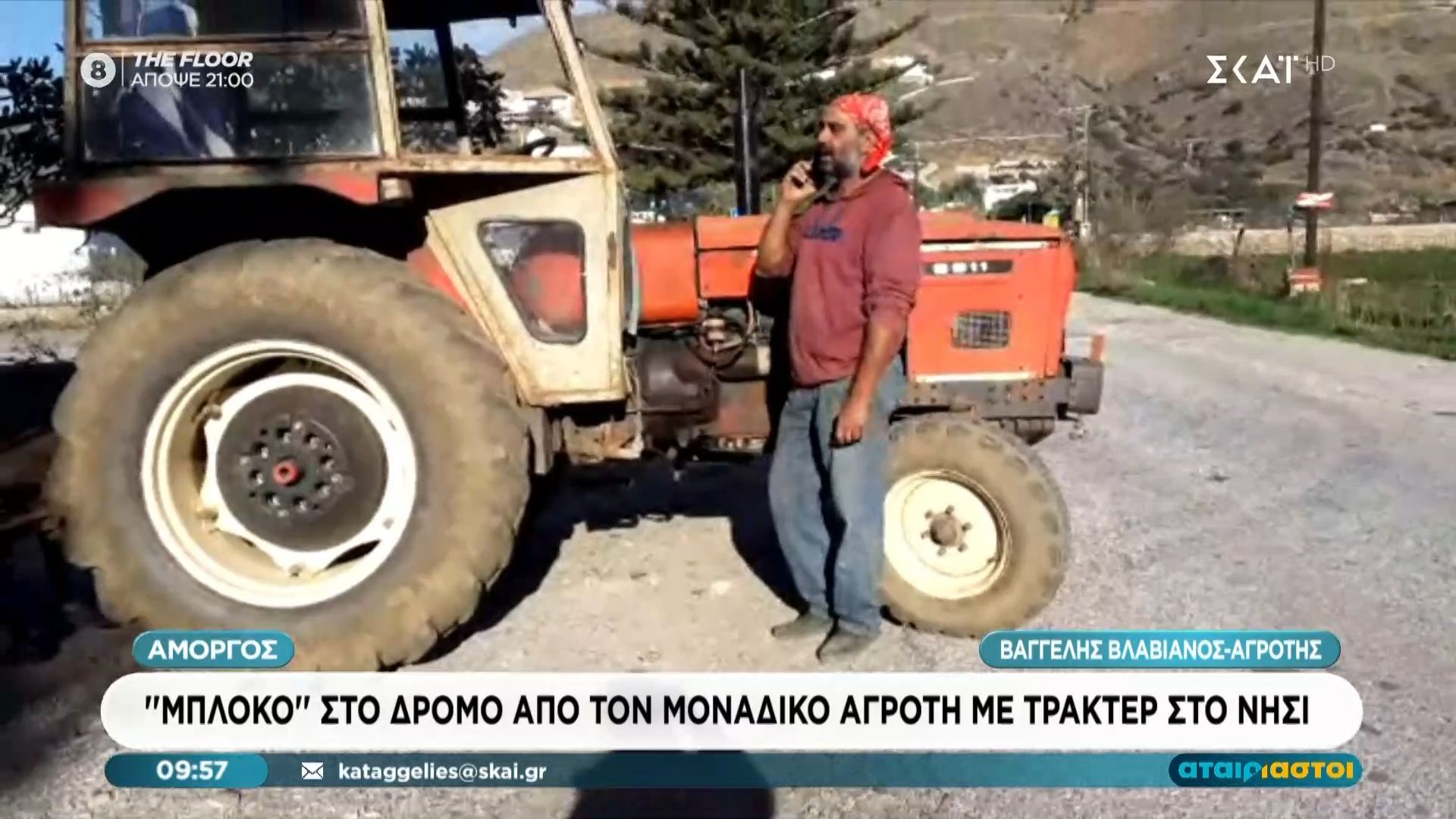 Μοναδικός αγρότης στην Αμοργό έχει στήσει μπλόκο στον δρόμο, συμμετέχοντας σε εκδηλώσεις διαμαρτυρίας που πραγματοποιούνται στο νησί. Σκοπός της κινητοποίησης είναι η αναγνώριση και στήριξη των αγροτικών προβλημάτων που αντιμετωπίζουν οι παραγωγοί σε ολόκληρη την Ελλάδα.