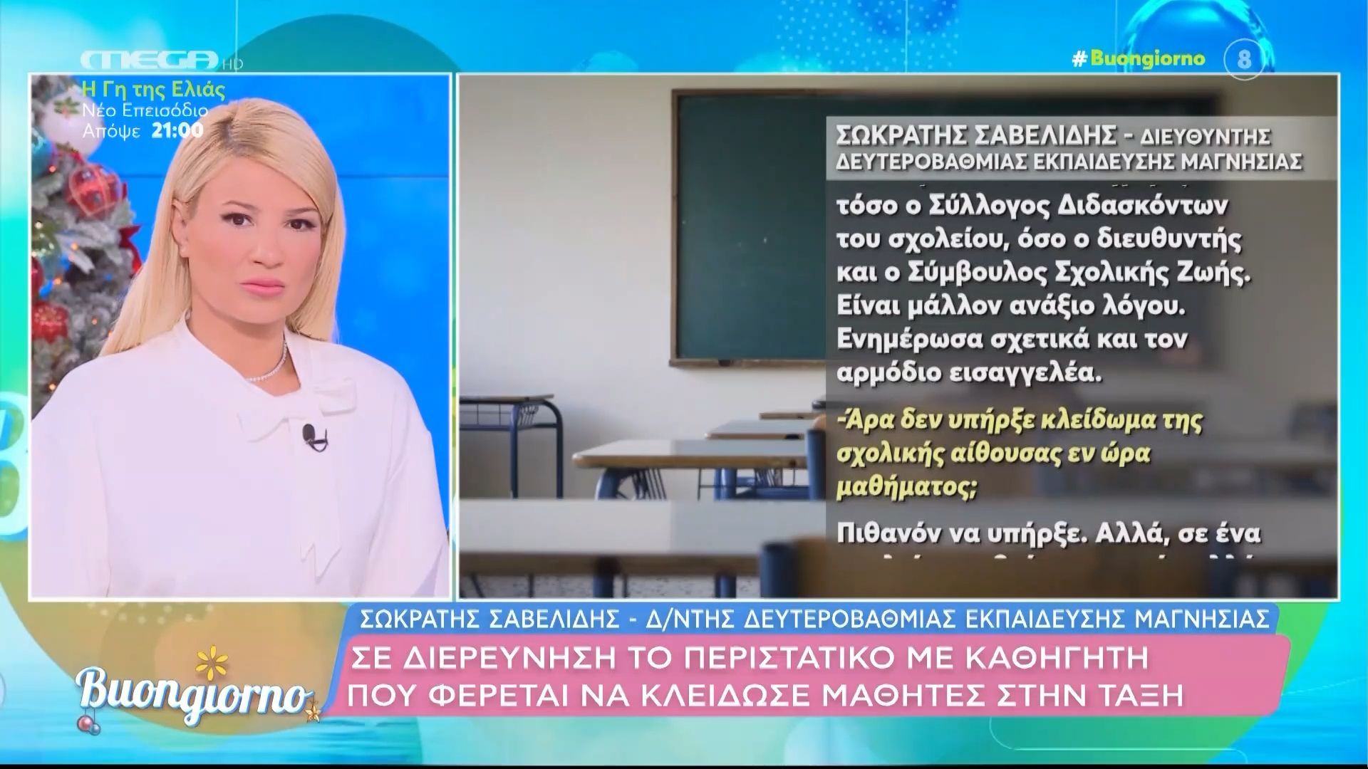 Περιστατικό που προκάλεσε ανησυχία σε σχολείο του Βόλου βρίσκεται υπό διερεύνηση, καθώς καθηγητής φέρεται να κλείδωνε τους μαθητές σε αίθουσα κατά τη διάρκεια μαθήματος. Η συμπεριφορά αυτή έχει ήδη προκαλέσει αντιδράσεις, με γονείς και μαθητές να εκφράζουν την ανησυχία τους για την ασφάλεια και την ευημερία των παιδιών τους.