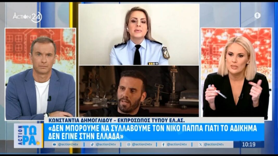 Η εκπρόσωπος Τύπου της ΕΛ.ΑΣ, Κωνσταντία Δημογλίδου, αναφέρθηκε στην επίθεση του Ν. Παππά κατά του δημοσιογράφου Νίκου Γιαννόπουλου, υπογραμμίζοντας τις νομικές δυσκολίες που προκύπτουν για τη σύλληψή του. Σύμφωνα με την κ. Δημογλίδου, το αδίκημα δεν διαπράχθηκε εντός ελληνικής επικράτειας, γεγονός που περιπλέκει τη διαδικασία.