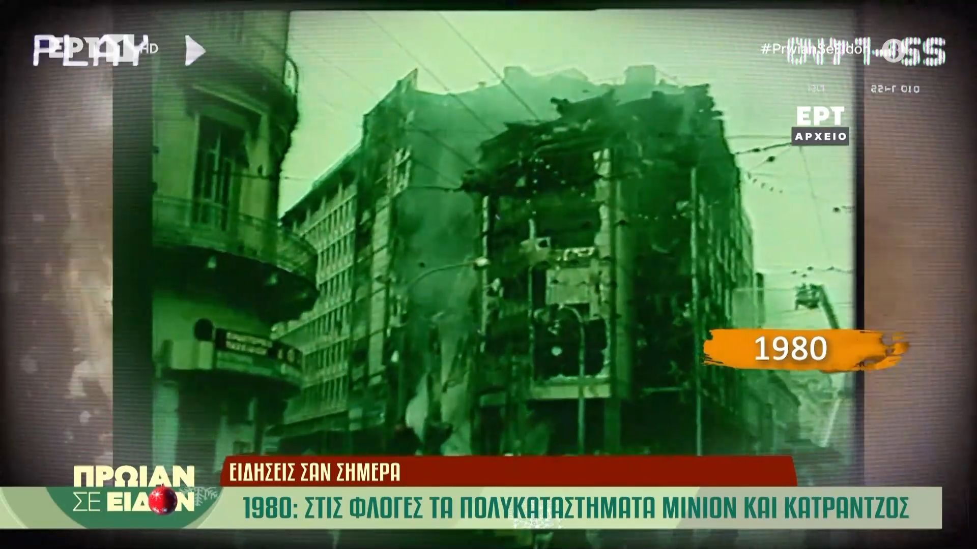 Στις 19 Δεκεμβρίου 1980, οι φλόγες κατέστρεψαν δύο από τα πιο γνωστά πολυκαταστήματα της Αθήνας, το Μινιόν και το Κατράντζος. Η φωτιά προκλήθηκε από άγνωστη αιτία και επεκτάθηκε γρήγορα, προκαλώντας σοβαρές υλικές ζημιές και αναστάτωση στην περιοχή.