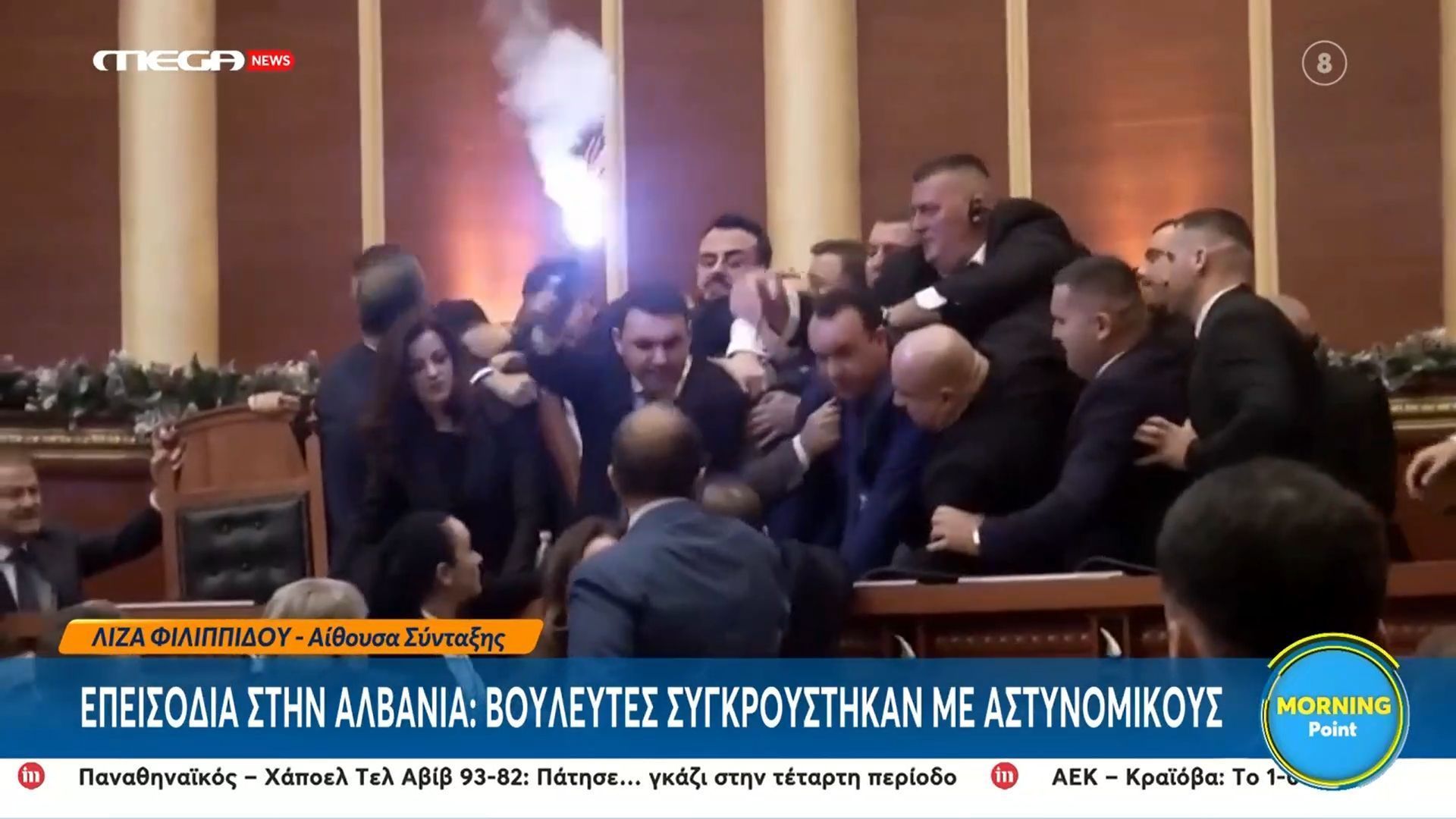 Σκηνές έντασης εκτυλίχθηκαν στο Κοινοβούλιο της Αλβανίας, όταν βουλευτές προχώρησαν σε ακραίες ενέργειες, ανάβοντας φωτοβολίδες και ρίχνοντας νερό στον πρόεδρο της Βουλής. Η κατάσταση ξέφυγε από τον έλεγχο, οδηγώντας την αστυνομία να παρέμβει με τη χρήση χημικών ουσιών εντός της αίθουσας.