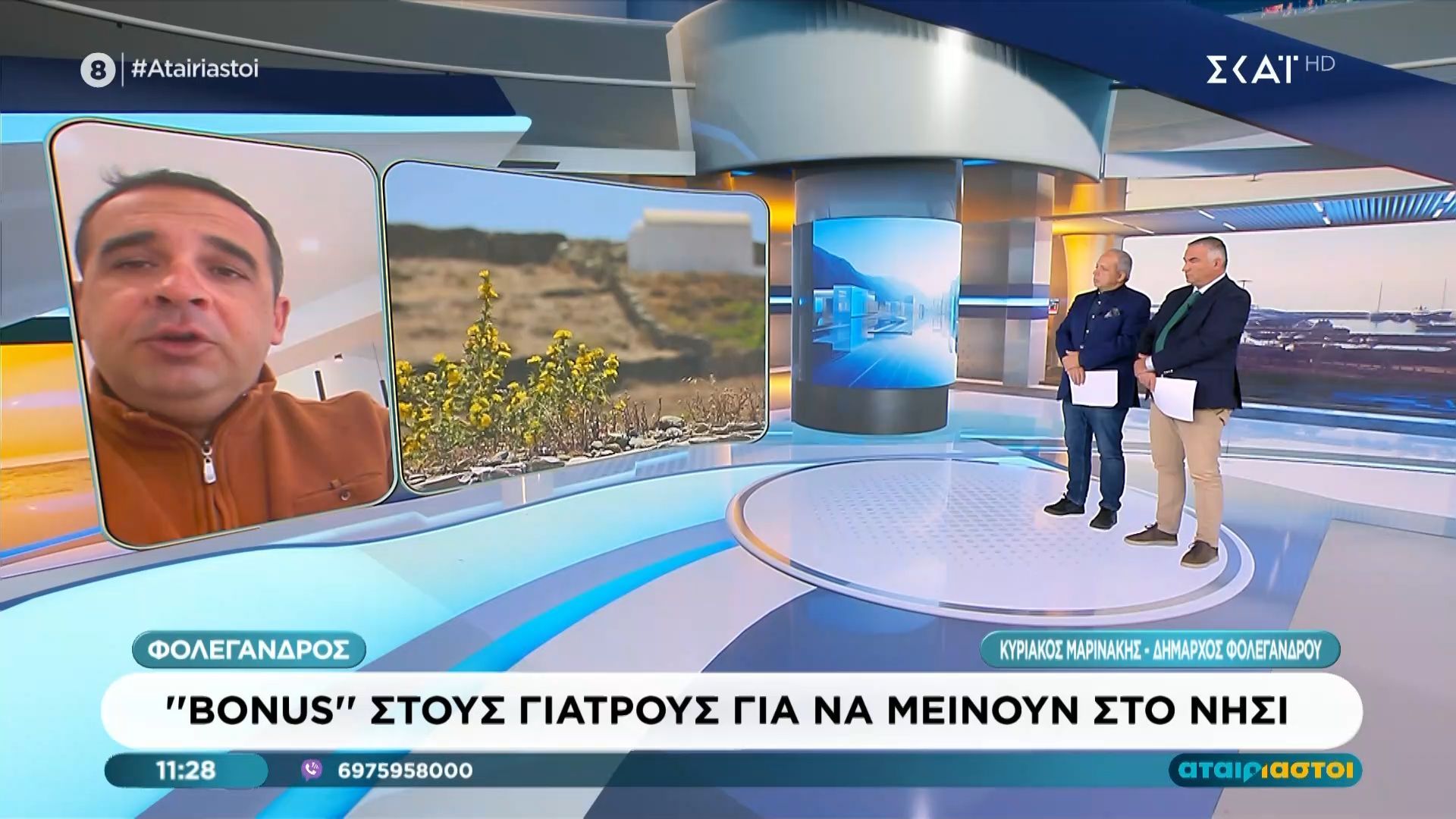 Ο Δήμαρχος Φολεγάνδρου, Κυριάκος Μαρινάκης, ανακοίνωσε την παροχή οικονομικών κινήτρων στους γιατρούς για να παραμείνουν στο νησί. Οι ειδικοί ιατροί θα λάβουν χρηματικό επίδομα καθώς και διευκολύνσεις σχετικά με τη στέγαση τους.
