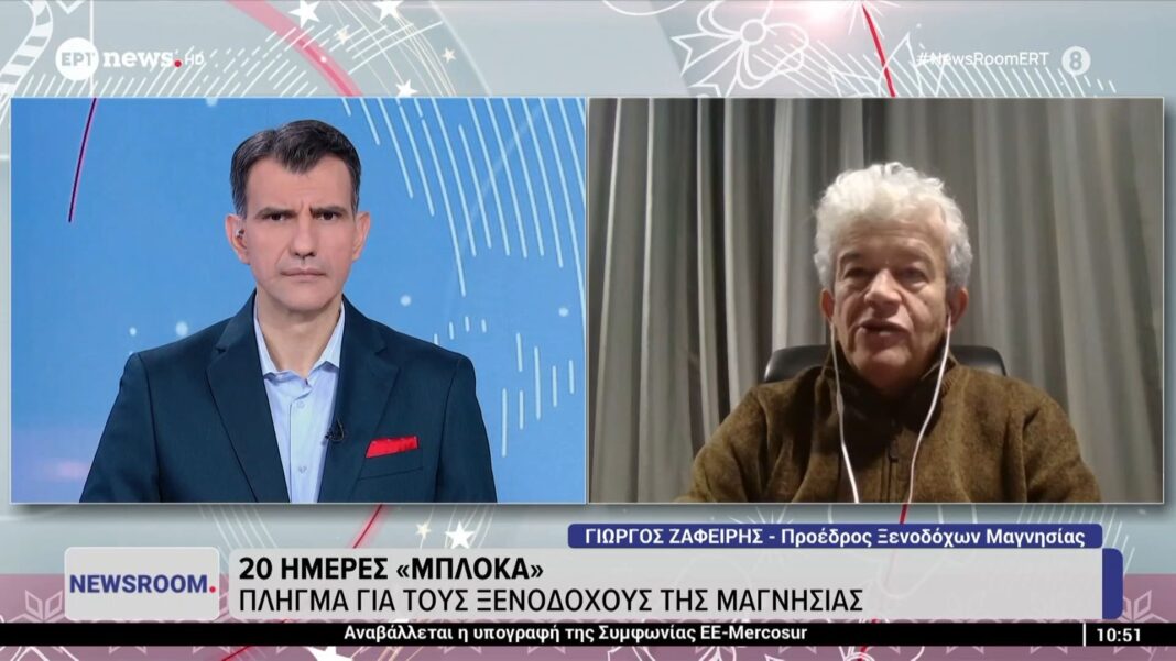 Η πληρότητα στα καταλύματα της Μαγνησίας αναμένεται να φτάσει το 60% κατά τη διάρκεια των Χριστουγέννων, σύμφωνα με τον Γιώργο Ζαφείρη, Πρόεδρο των Ξενοδόχων της περιοχής. Παρά τις ελπίδες για αύξηση της τουριστικής κίνησης, οι 20 ημέρες «μπλόκα» έχουν προκαλέσει σημαντικά προβλήματα στους ξενοδόχους, οι οποίοι ανησυχούν για τις επιπτώσεις στην οικονομία τους.
