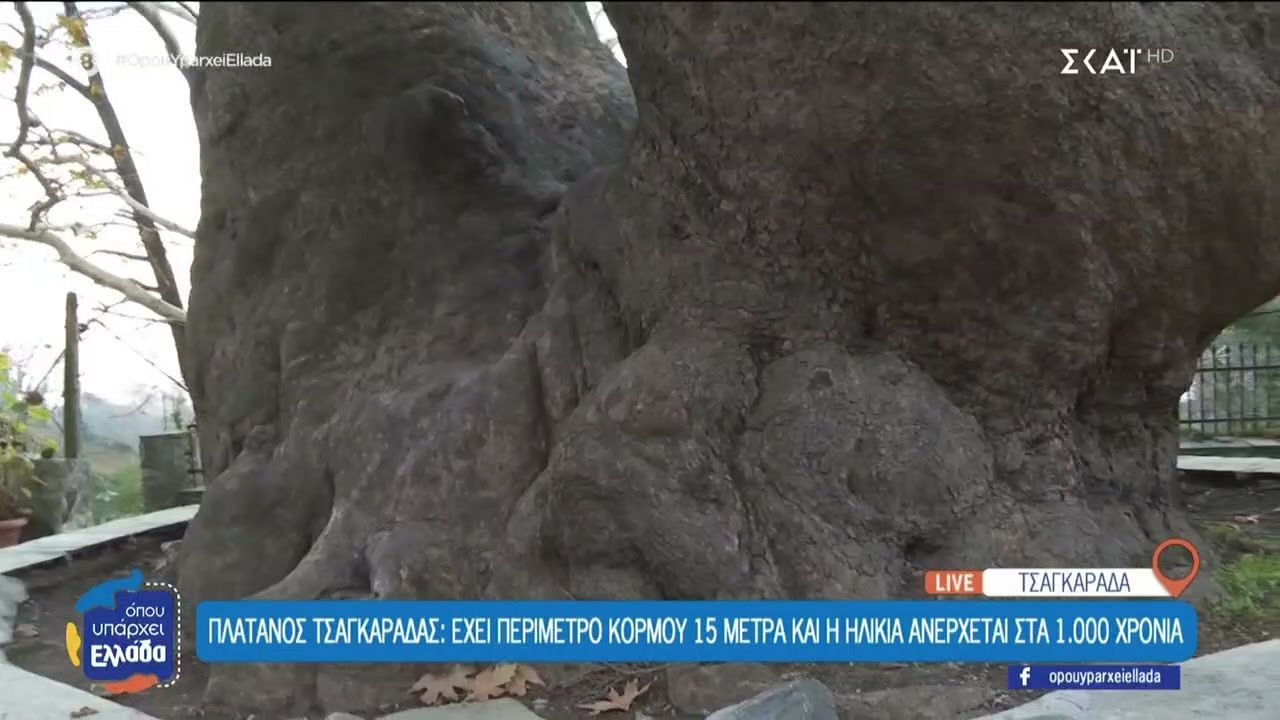 Στην Τσαγκαράδα, εντυπωσιάζει ένα υπεραιωνόβιο δέντρο που έχει περίμετρο κορμού 15 μέτρα και ηλικία περίπου 1.000 χρόνια. Αυτός ο πλάτανος αποτελεί σύμβολο της τοπικής φυσικής κληρονομιάς και προσελκύει επισκέπτες από όλη τη χώρα, οι οποίοι εντυπωσιάζονται από την επιβλητική του παρουσία.