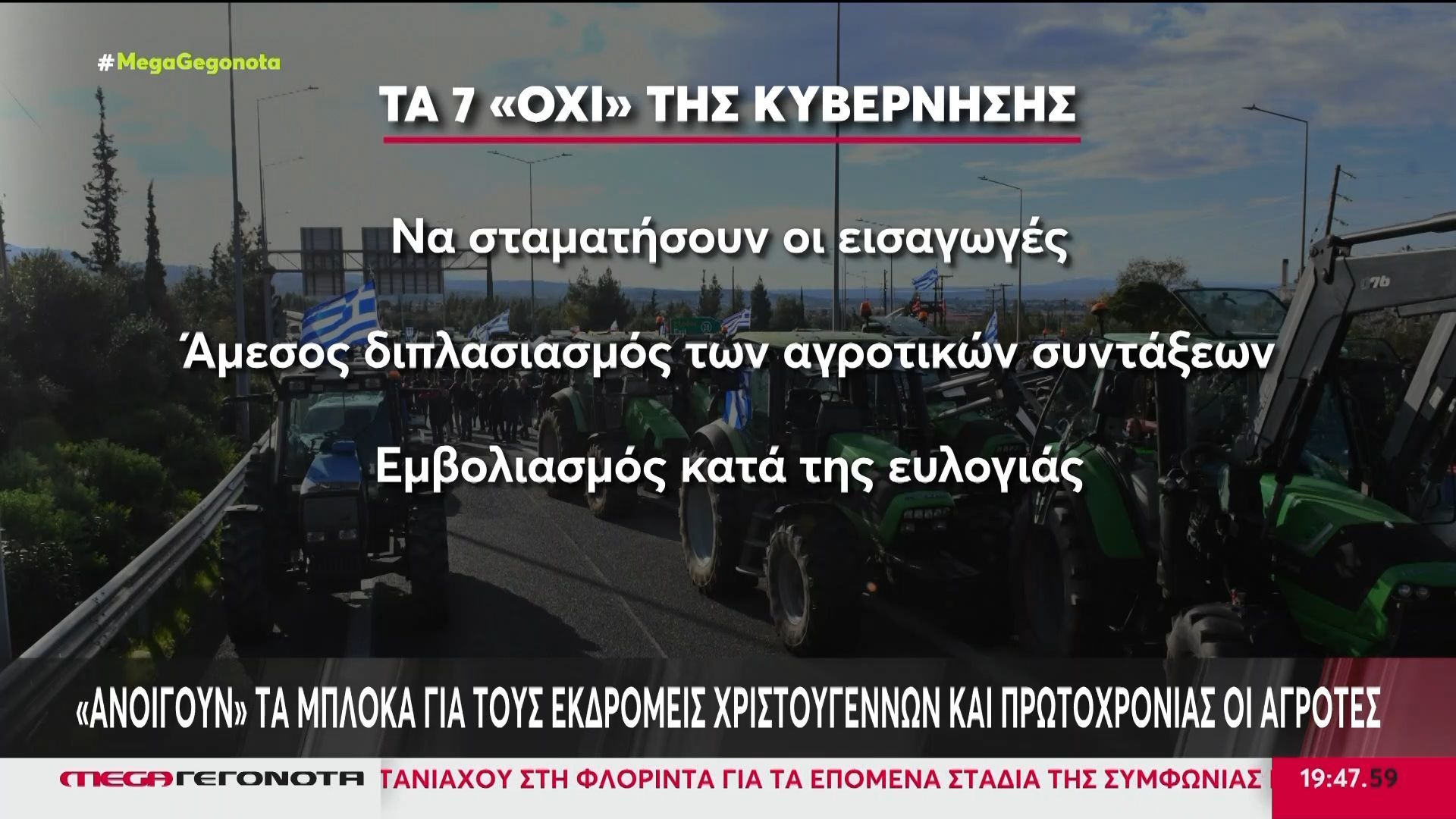 Κυβερνητική άρνηση σε επτά αιτήματα των αγροτών, προκαλώντας έντονες αντιδράσεις και προοπτική κλιμάκωσης των κινητοποιήσεων