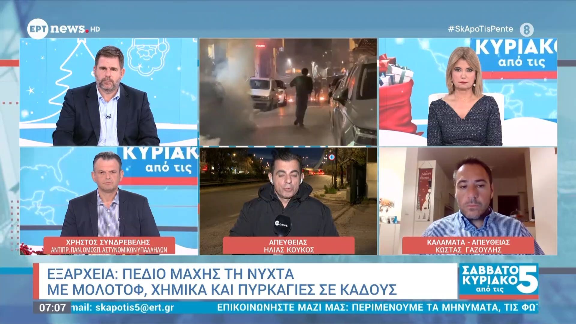 Στη διάρκεια της νύχτας, οι δρόμοι των Εξαρχείων μετατράπηκαν σε πεδίο μάχης, με συγκρούσεις μεταξύ διαδηλωτών και αστυνομικών δυνάμεων. Μολότοφ και χημικά χρησιμοποιήθηκαν από τις δύο πλευρές, ενώ οι φλόγες από κάδους απορριμμάτων δημιούργησαν αποκαρδιωτικές εικόνες.