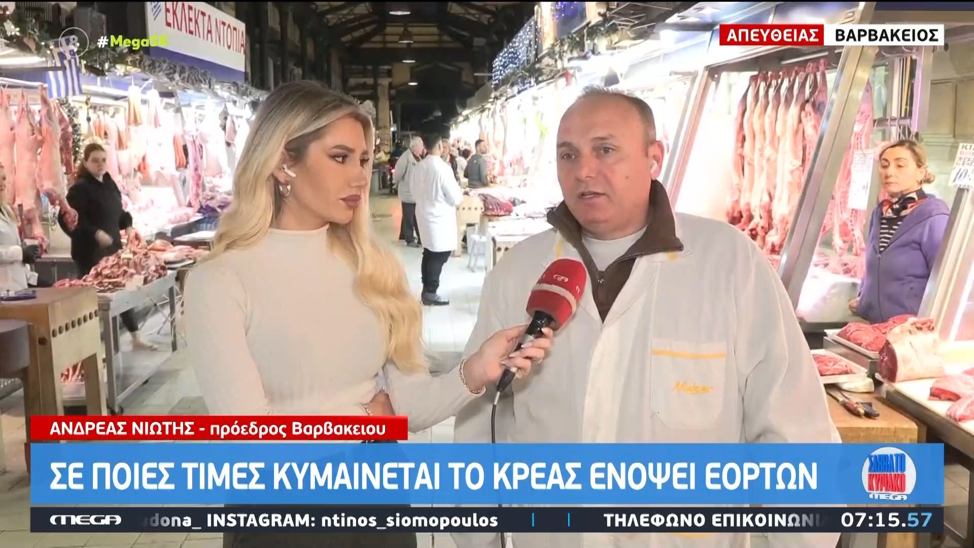 Ο πρόεδρος της Βαρβακείου αγοράς, Ανδρέας Νιώτης, παρουσίασε τις τρέχουσες τιμές των κρεάτων στην αγορά. Σύμφωνα με τον ίδιο, οι τιμές για το μοσχάρι κυμαίνονται από 9 έως 14 ευρώ, ενώ τα κατσίκια και τα αρνιά πωλούνται από 10 έως 13 ευρώ το κιλό.