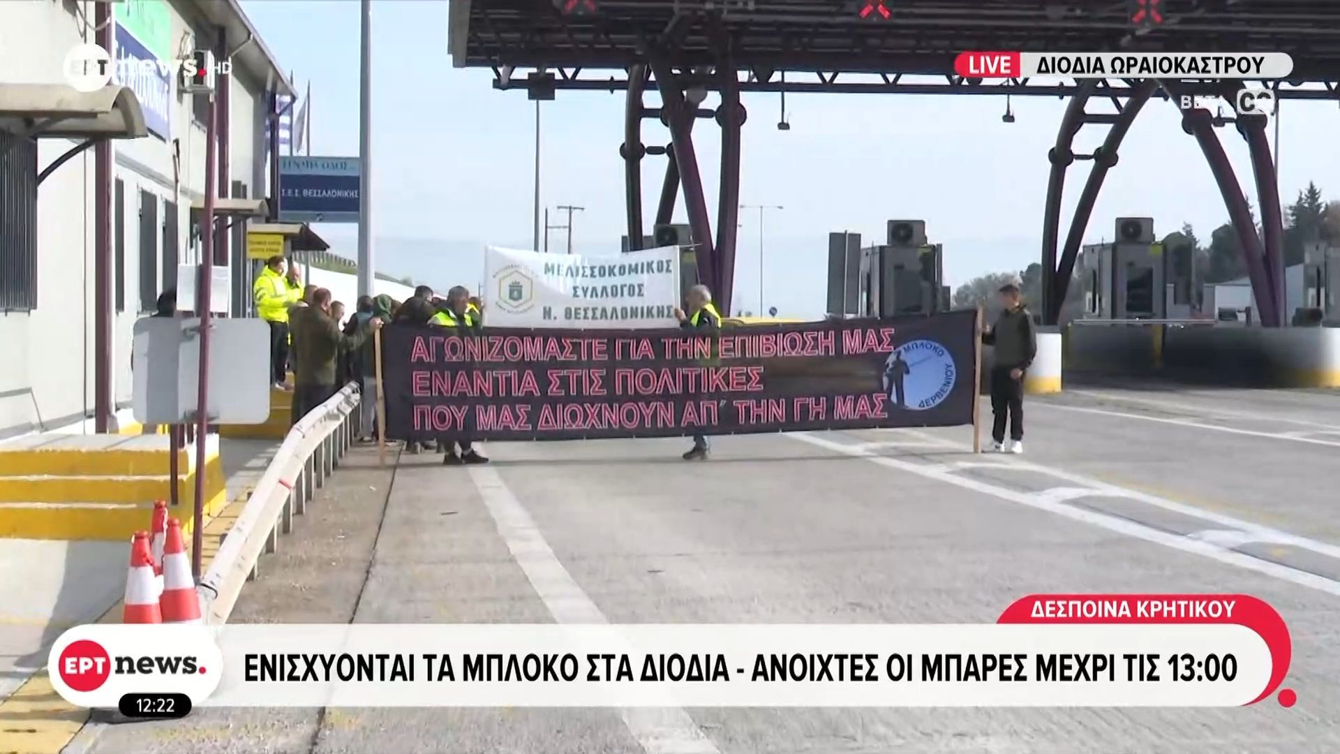 Ενισχύονται τα μπλόκα στα διόδια – Ανοιχτές οι μπάρες μέχρι τις 15:00