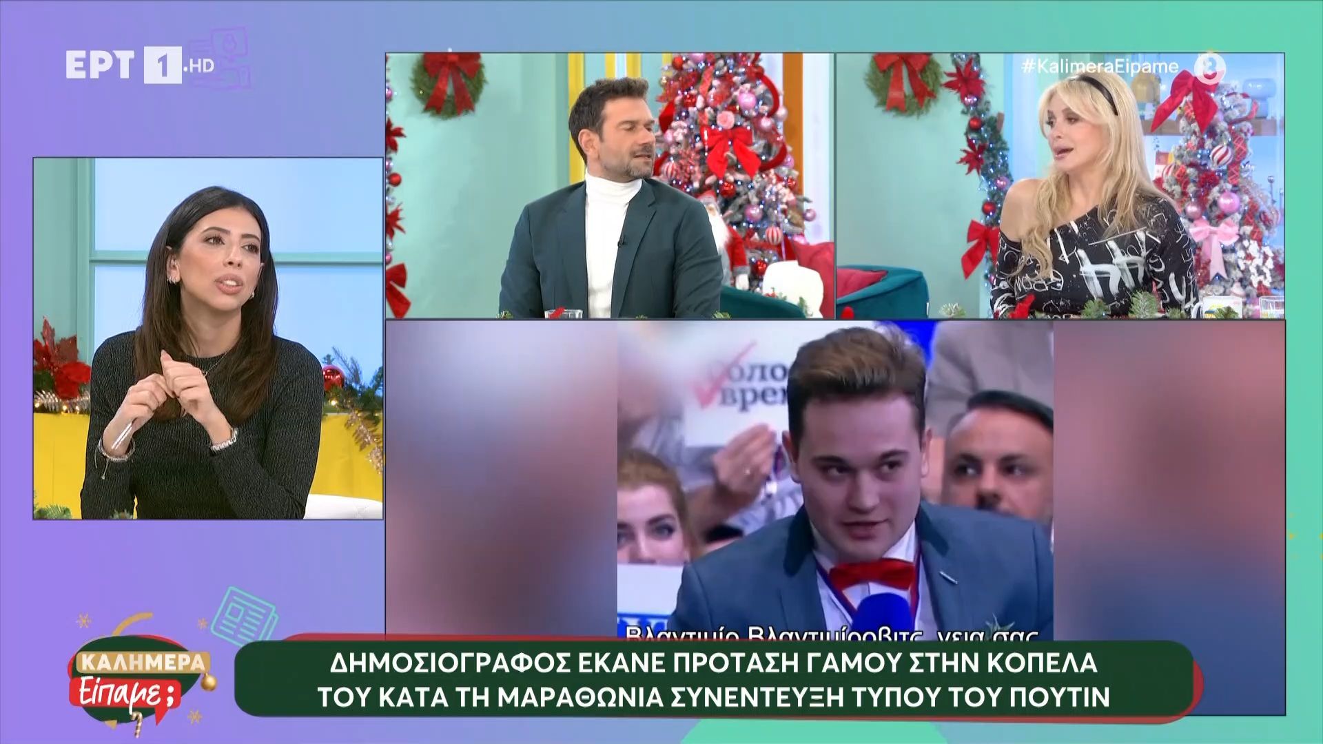 Κατά τη διάρκεια μιας μαραθώνιας συνέντευξης τύπου του Ρώσου προεδρου, ένας δημοσιογράφος αιφνιδίασε τους παρευρισκόμενους κάνοντάς του πρόταση γάμου. Η στιγμή αυτή, που συνέβη μπροστά σε εκατοντάδες δημοσιογράφους και τηλεοπτικές κάμερες, προκάλεσε αμηχανία αλλά και γέλιο στην αίθουσα.