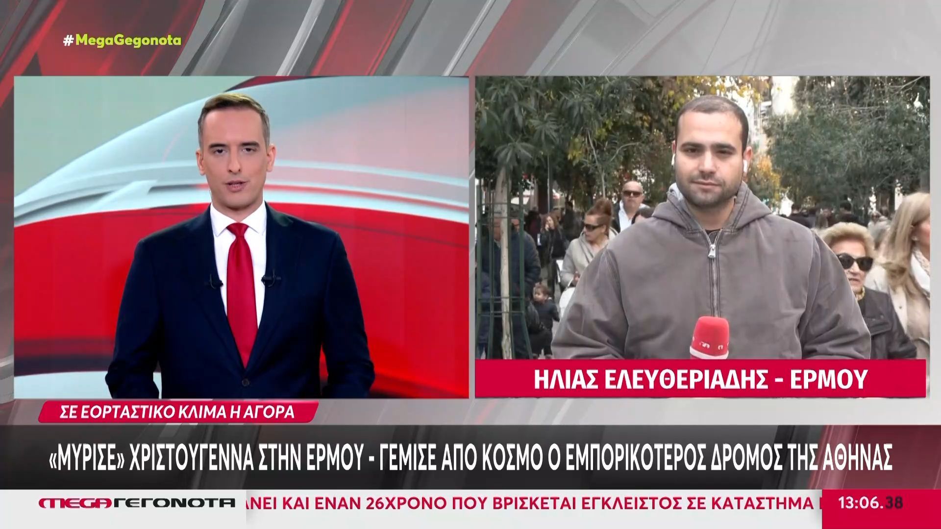 Ο εμπορικότερος δρόμος της Αθήνας, η Ερμού, γέμισε κόσμο καθώς οι πολίτες σπεύδουν για τα ψώνια των Χριστουγέννων. Οι βιτρίνες των καταστημάτων είναι στολισμένες με εορταστικά διακοσμητικά, προσφέροντας μια μαγευτική ατμόσφαιρα που ενισχύει το πνεύμα των γιορτών.