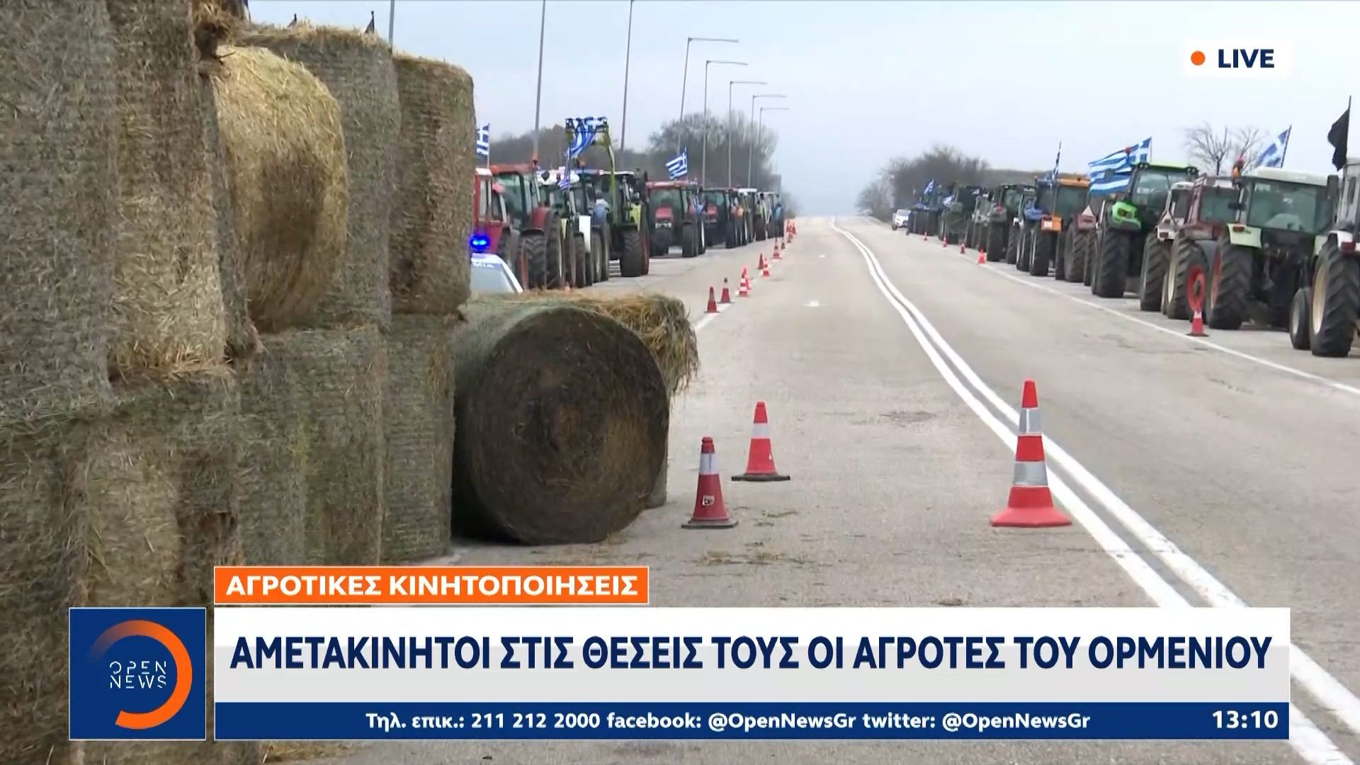 Κλειστό παραμένει το τελωνείο Ορμενίου, με τους αγρότες να διαμαρτύρονται και να επιμένουν στις θέσεις τους. Η κατάσταση έχει οδηγήσει σε εγκλωβισμό περισσότερων από 100 νταλίκες, που περιμένουν να περάσουν από τα σύνορα προς τη Βουλγαρία.