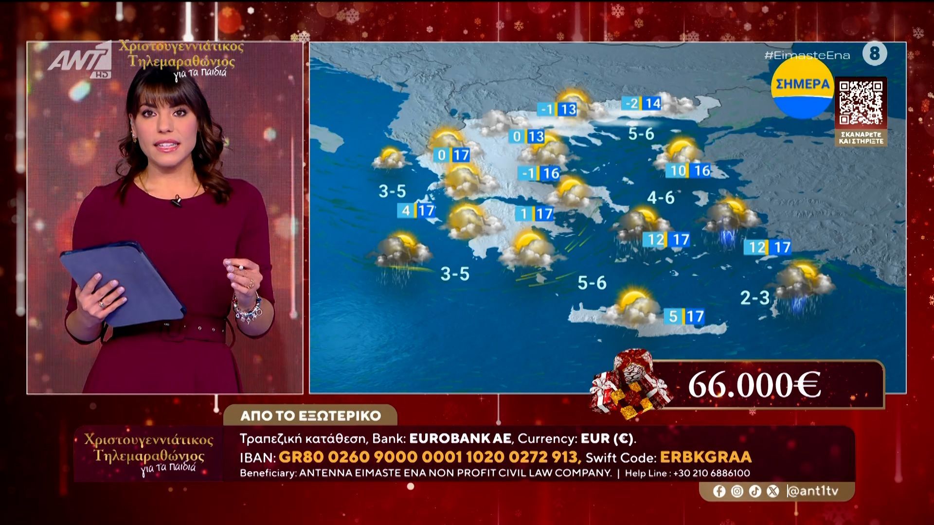 Η Χαρά Μάλεση μας ενημερώνει για τις καιρικές συνθήκες που αναμένονται σήμερα στη χώρα. Οι θερμοκρασίες θα κυμανθούν από 5 έως 15 βαθμούς Κελσίου, με πιθανές βροχοπτώσεις σε αρκετές περιοχές, ιδίως στα δυτικά και βόρεια.