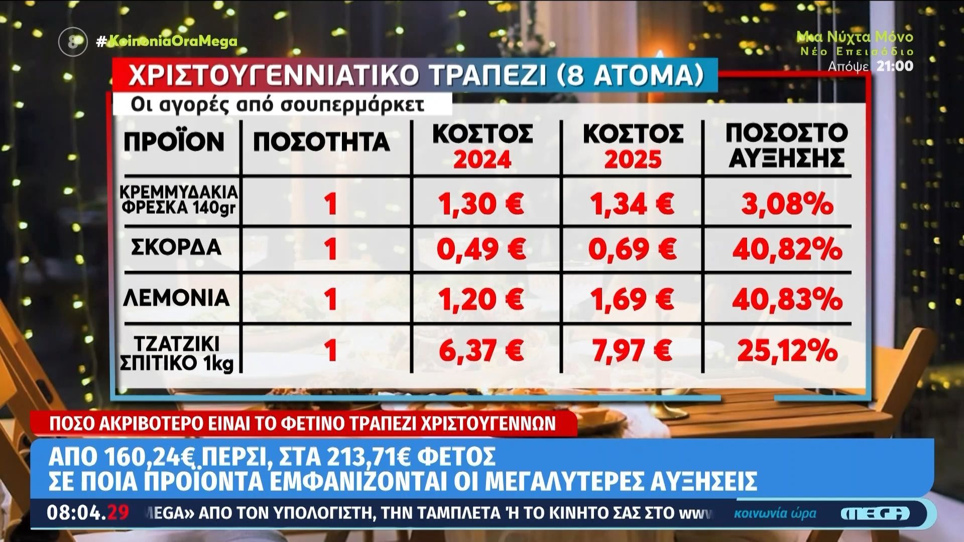 Σημαντική αύξηση στις τιμές των τροφίμων φέρνει ακριβότερο το φετινό χριστουγεννιάτικο τραπέζι κατά 20% σε σχέση με πέρυσι