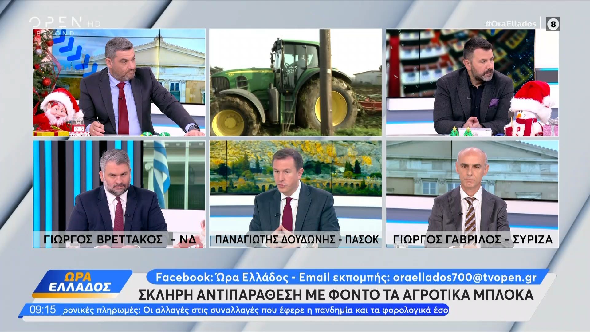 Πολιτικοί από ΝΔ, ΠΑΣΟΚ και ΣΥΡΙΖΑ συζητούν για τα αγροτικά μπλόκα, τις αιτίες τους και τις προτάσεις επίλυσης των προβλημάτων του αγροτικού τομέα
