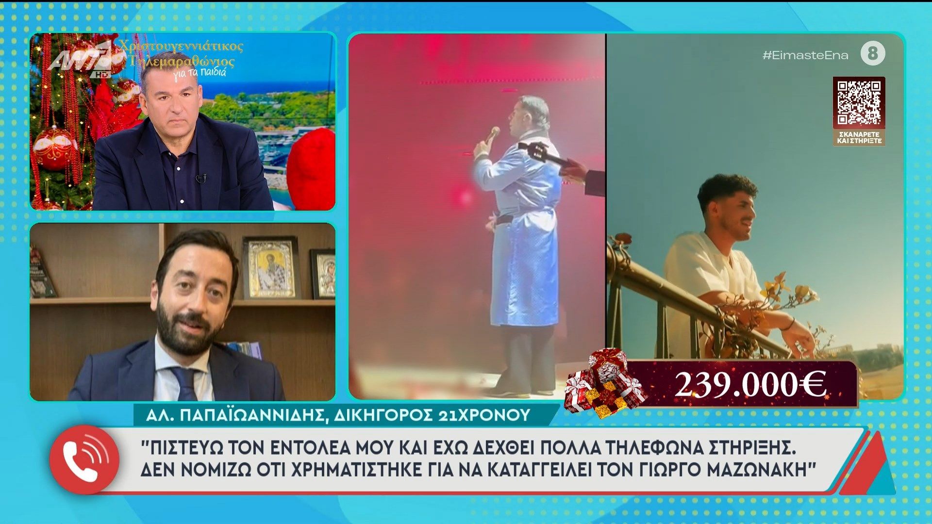 Υπόθεση Μαζωνάκη: Ο Αλέξανδρος Παπαϊωαννίδης, δικηγόρος 21χρονου, μιλάει στο Πρωινό – 22/12/2025