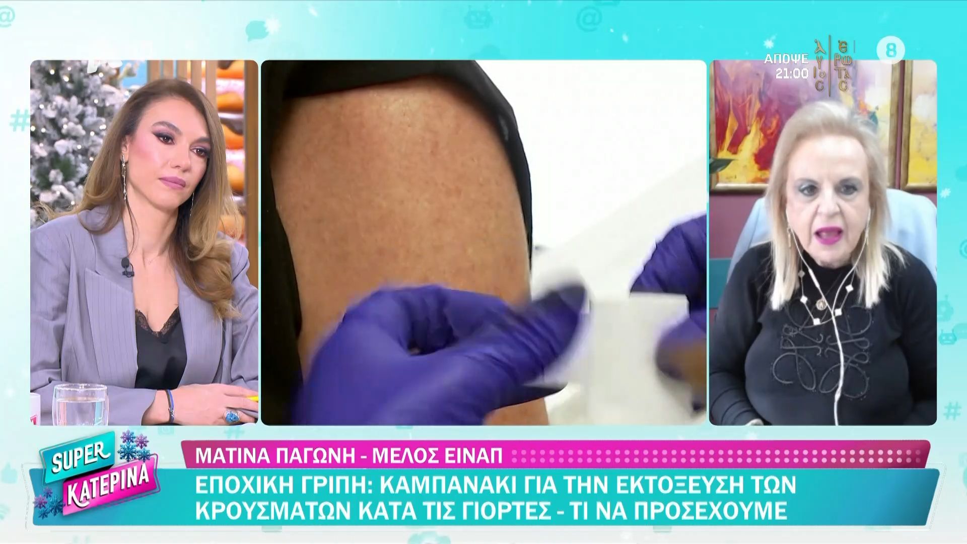 Η Ματίνα Παγώνη αναφέρεται στην ανησυχητική αύξηση των κρουσμάτων εποχικής γρίπης, η οποία παρατηρείται κατά την περίοδο των γιορτών. Η κατάσταση αυτή προκαλεί ανησυχία, καθώς η γρίπη μπορεί να επηρεάσει σοβαρά τις ευπαθείς ομάδες του πληθυσμού.