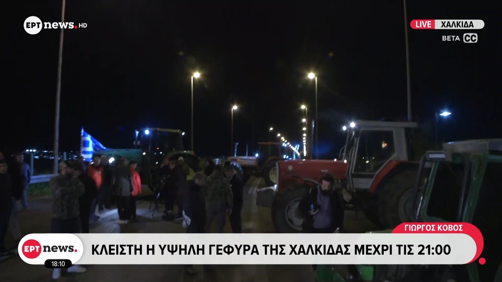 Αγρότες έχουν στήσει μπλόκα στη Χαλκίδα, με αποτέλεσμα να παραμείνει κλειστή η υψηλή γέφυρα μέχρι τις 21:00. Η κινητοποίηση αυτή είναι μέρος των διαμαρτυριών για ζητήματα που αφορούν τον αγροτικό τομέα και τις συνθήκες εργασίας τους.