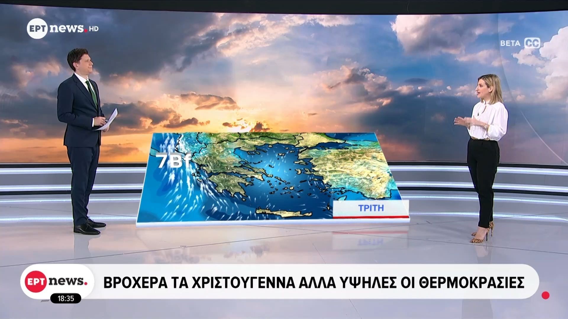 Η πρόγνωση του καιρού για τις γιορτές δείχνει βροχές σε πολλές περιοχές της χώρας, παρά τις υψηλές θερμοκρασίες που θα επικρατήσουν. Η Νικολέτα Ζιακοπούλου αναλύει τα καιρικά φαινόμενα που θα συνοδεύσουν τα Χριστούγεννα, επισημαίνοντας την αστάθεια του καιρού.
