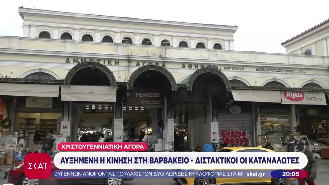Αυξημένη είναι η κίνηση στη Βαρβάκειο αγορά, καθώς οι καταναλωτές προετοιμάζονται για τις γιορτές. Παρά την έντονη δραστηριότητα, οι αγοραστές εμφανίζονται διστακτικοί, επηρεασμένοι από την οικονομική κατάσταση και τις αυξήσεις στις τιμές των αγαθών.