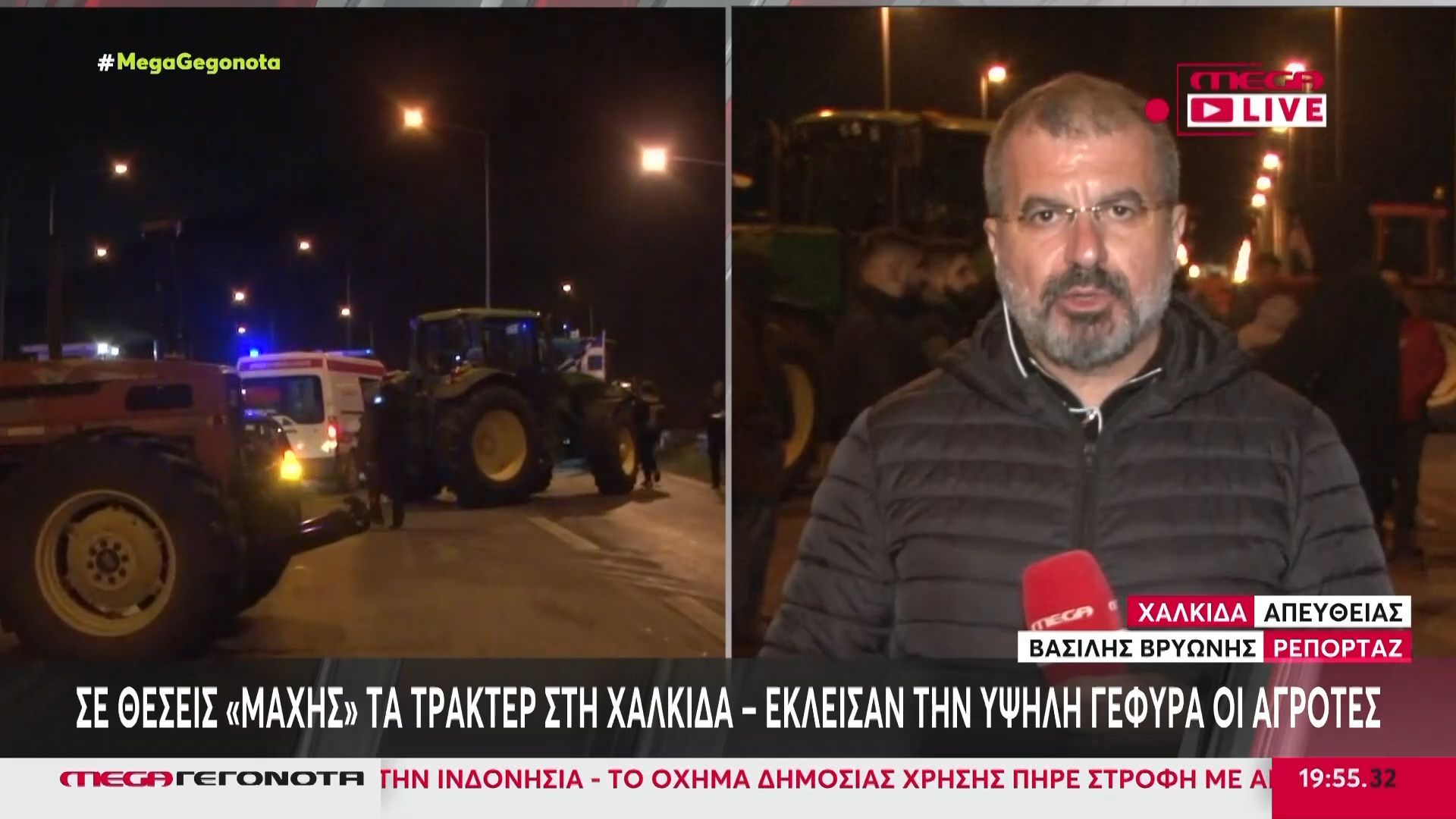 Σε θέσεις «μάχης» τα τρακτέρ στη Χαλκίδα – Ένταση μεταξύ αγροτών και Αστυνομίας