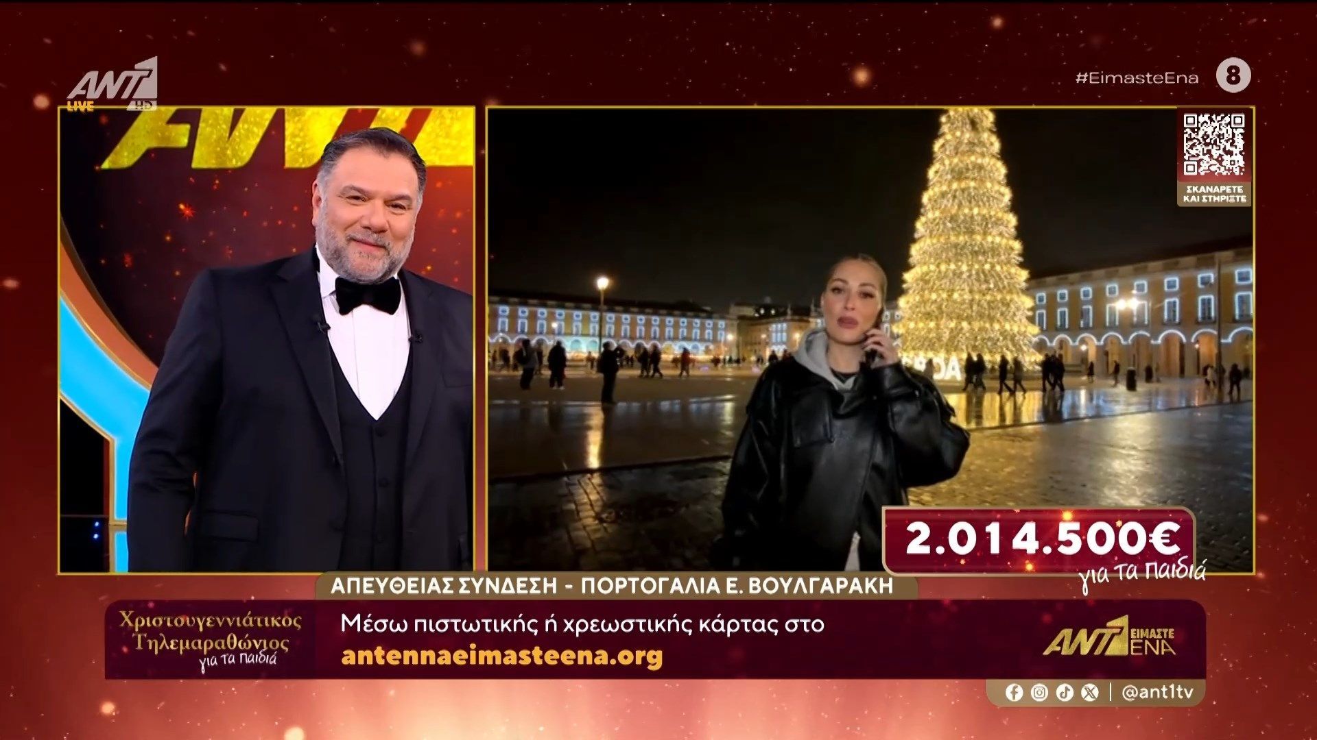 Η Ελένη Βουλγαράκη συμμετείχε φέτος στον Χριστουγεννιάτικο τηλεμαραθώνιο του ΑΝΤ1, προσφέροντας τη στήριξή της σε κοινωνικές δράσεις. Με έντονη παρουσία και θετική διάθεση, η γνωστή τραγουδίστρια ενθάρρυνε το κοινό να συμμετάσχει στην προσπάθεια για την ενίσχυση ευάλωτων ομάδων.