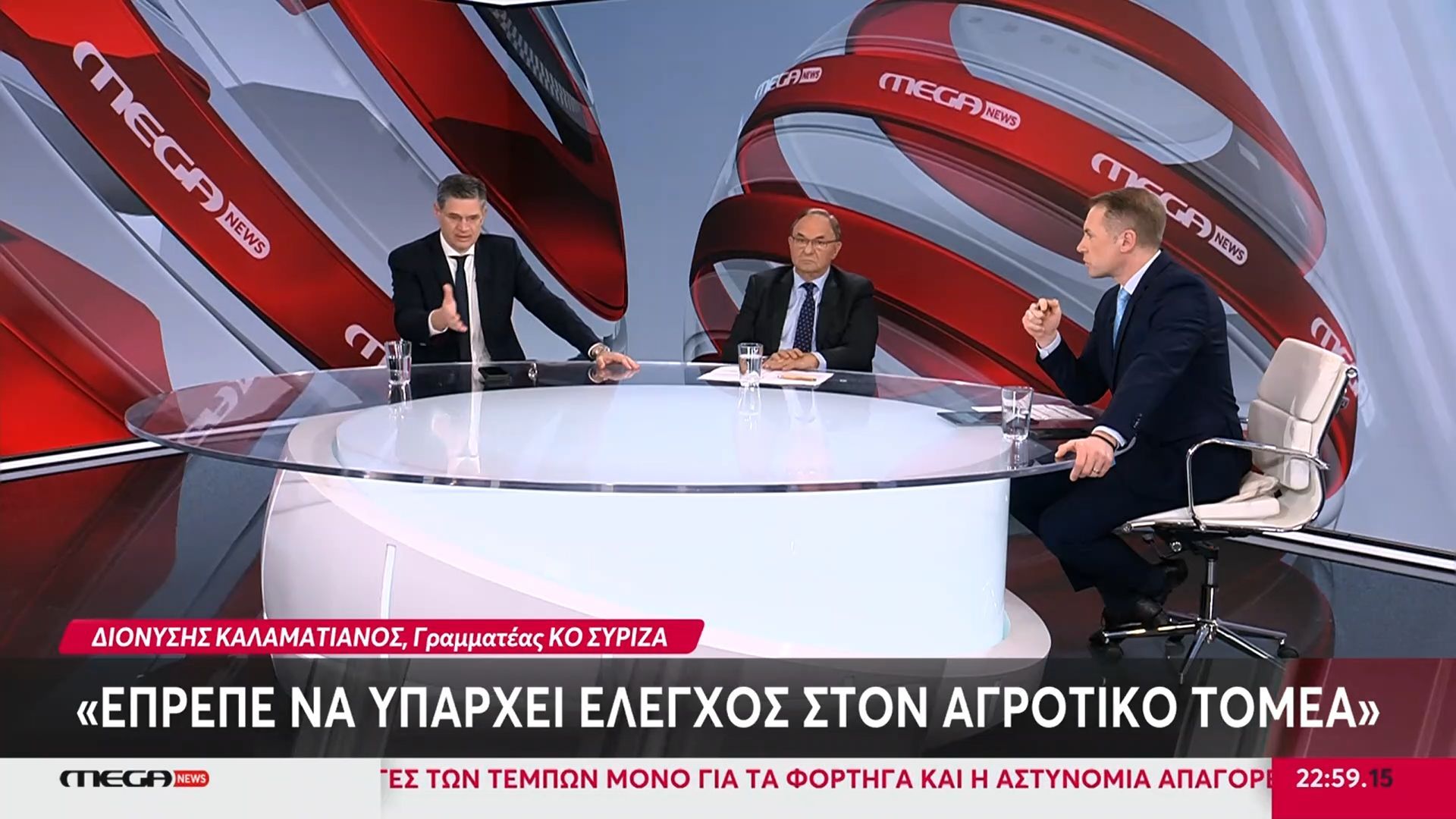 Η πολιτική σκηνή της χώρας βρίσκεται σε αναταραχή λόγω των πρόσφατων κινητοποιήσεων των αγροτών, που διεκδικούν καλύτερες συνθήκες εργασίας και στήριξη από την κυβέρνηση. Στη συζήτηση συμμετείχαν οι Δ. Καλογερόπουλος από τη Νέα Δημοκρατία, Δ. Καλαματιανός από τον ΣΥΡΙΖΑ και Μ. Παππούς από το ΠΑΣΟΚ, οι οποίοι εξέφρασαν τις διαφορετικές απόψεις τους σχετικά με την κατάσταση.