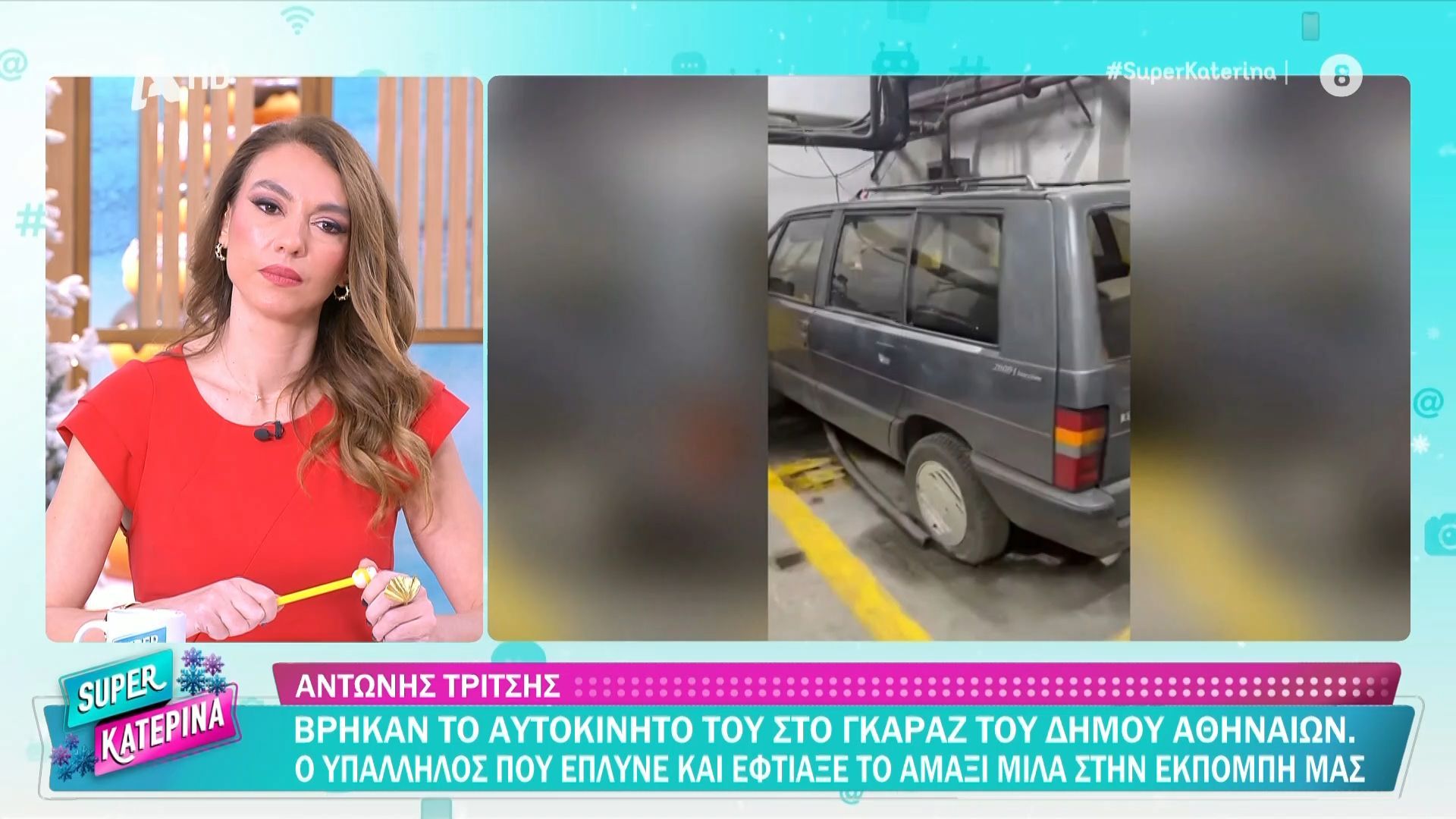 Το αυτοκίνητο του Αντώνη Τρίτση εντοπίστηκε σε γκαράζ του Δήμου Αθηναίων, προκαλώντας αναστάτωση και ερωτήματα σχετικά με την κατάσταση του οχήματος. Ο υπάλληλος που το έπλυνε και το επιδιόρθωσε δήλωσε ότι το αυτοκίνητο ήταν σε καλή κατάσταση, αν και χρειάστηκε κάποιες διορθώσεις.