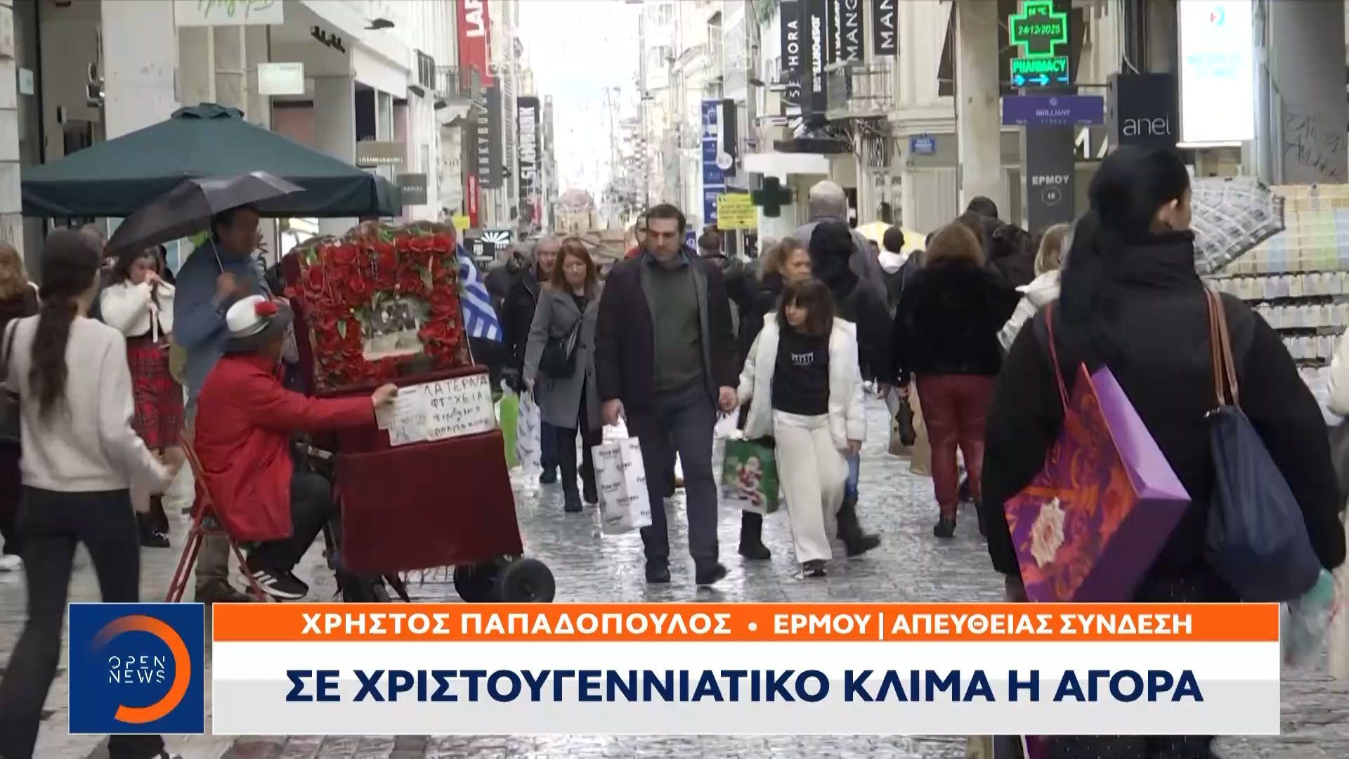 Η αγορά πλημμυρίζει από κόσμο καθώς οι καταναλωτές σπεύδουν να προμηθευτούν δώρα για τις γιορτές. Σε κάθε γωνιά του κέντρου, οι βιτρίνες είναι στολισμένες με χριστουγεννιάτικα φωτάκια και οι ήχοι των εορταστικών μελωδιών δημιουργούν μια ατμόσφαιρα γιορτής.