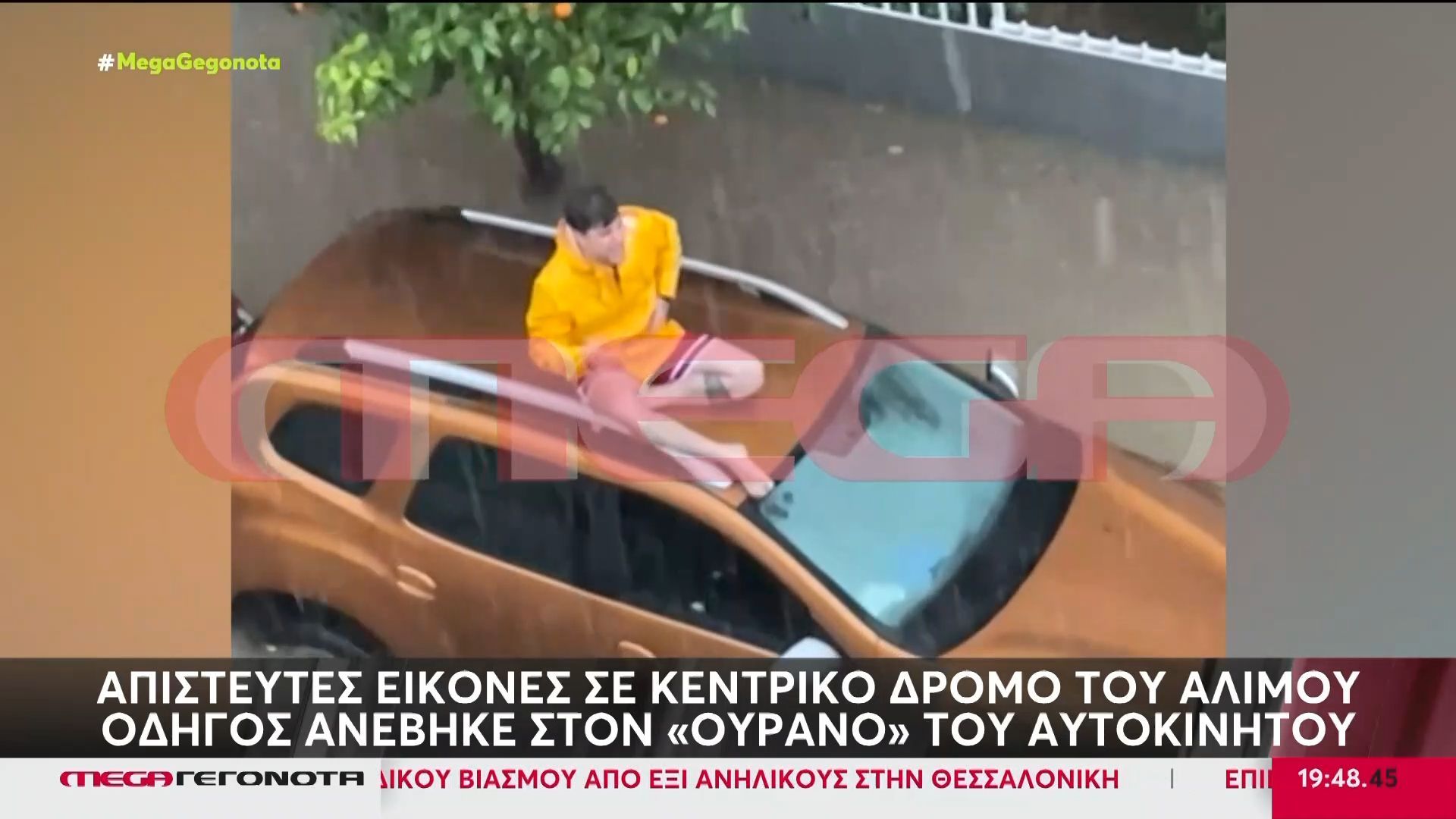 Κακοκαιρία στην Αθήνα: Οδηγός ανέβηκε στον «ουρανό» του αυτοκινήτου