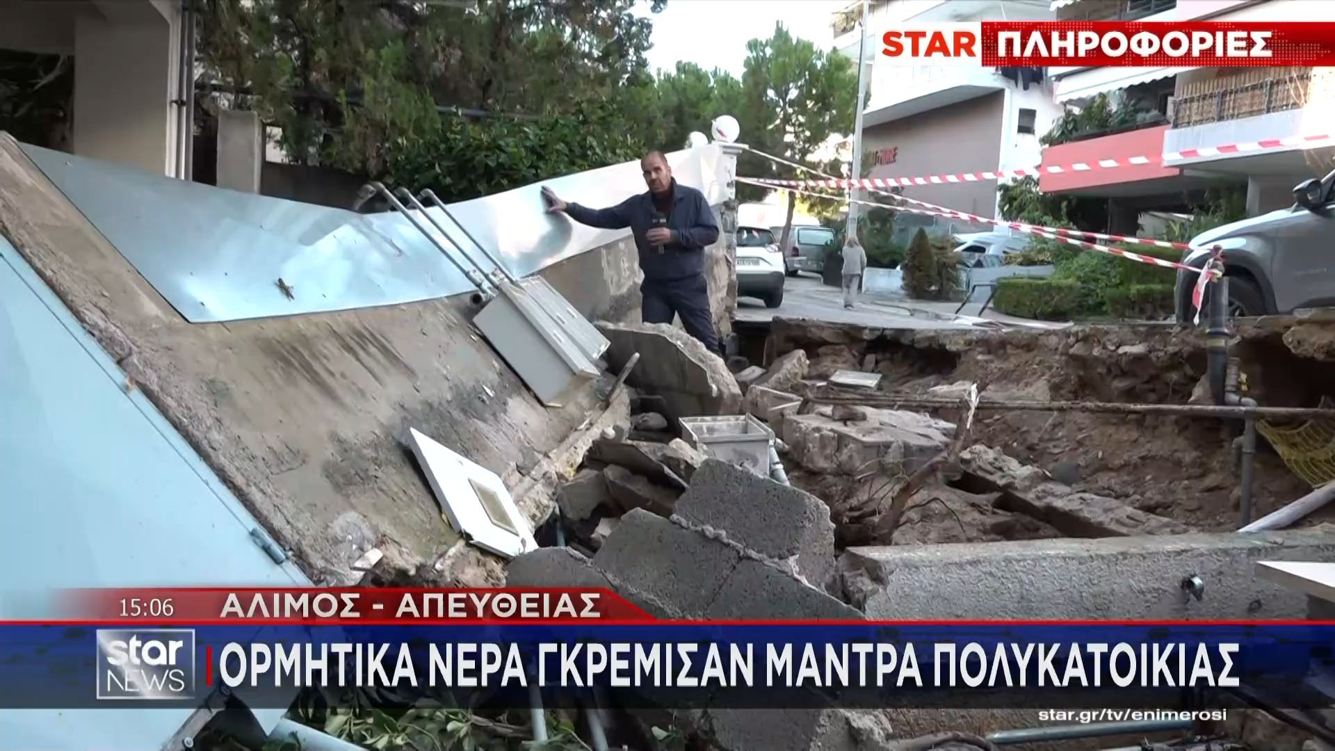 Μάντρα πολυκατοικίας στον Άλιμο κατέρρευσε την Τετάρτη, εξαιτίας της έντονης καταιγίδας που πλήττει την περιοχή. Οι κάτοικοι βρέθηκαν σε κατάσταση σοκ, καθώς ο δρόμος μετατράπηκε σε ορμητικό χείμαρρο, θέτοντας σε κίνδυνο τις ζωές τους.