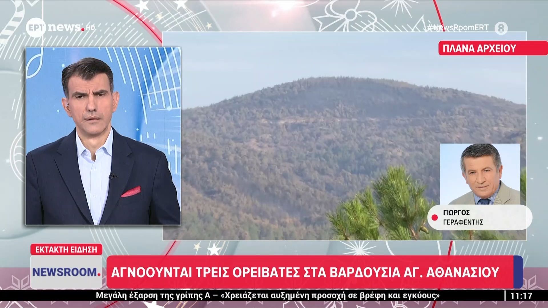 Τρεις ορειβάτες έχουν αγνοηθεί από χθες στα Βαρδούσια, προκαλώντας συναγερμό στις αρχές. Οι προσπάθειες εντοπισμού τους περιλαμβάνουν τη συμμετοχή της Πυροσβεστικής και της Αστυνομίας, με τη χρήση drones και ειδικά εκπαιδευμένων σκύλων.