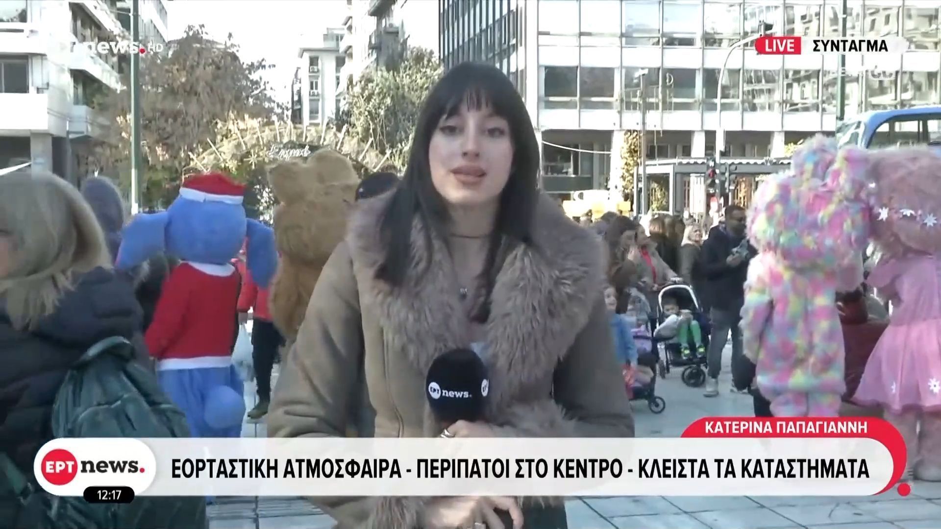 Εορταστική ατμόσφαιρα επικρατεί στο κέντρο της Αθήνας, καθώς πολίτες και επισκέπτες απολαμβάνουν περιπάτους στους δρόμους. Παρά το γεγονός ότι τα καταστήματα παραμένουν κλειστά, η ζωντάνια και η εορταστική διάθεση γεμίζουν την πλατεία Συντάγματος και τις γύρω περιοχές.