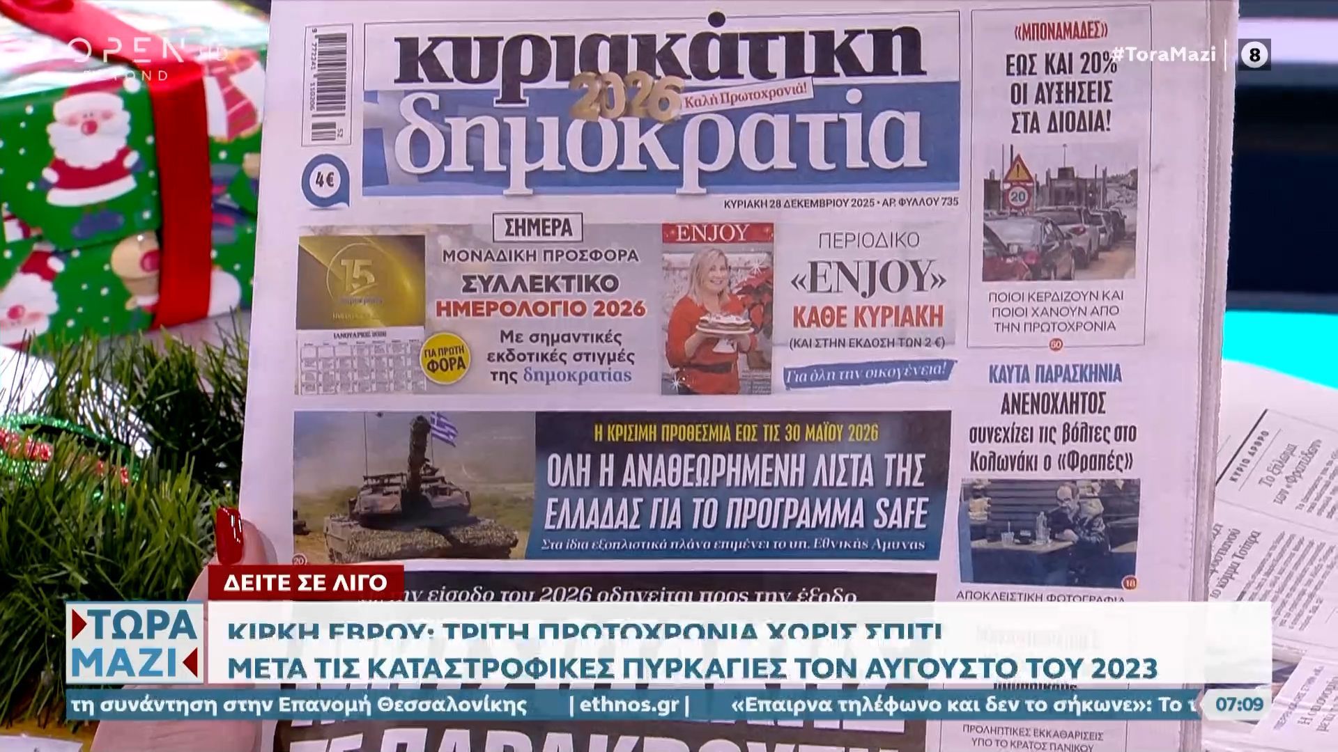 Πρωτοσέλιδα εφημερίδων: Τι γράφουν σήμερα Κυριακή 28 Δεκεμβρίου 2025